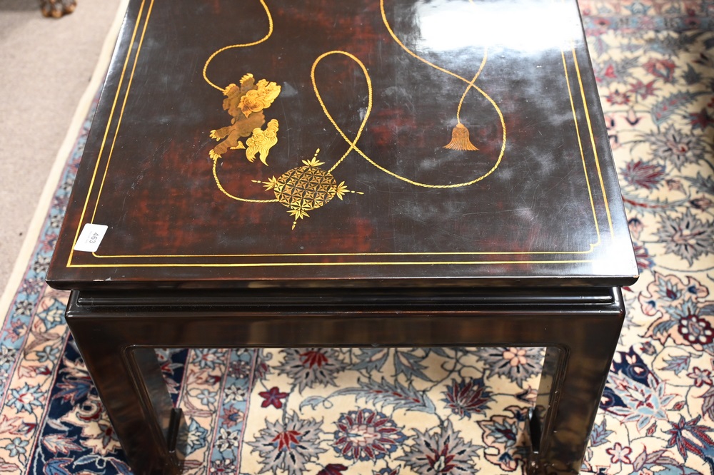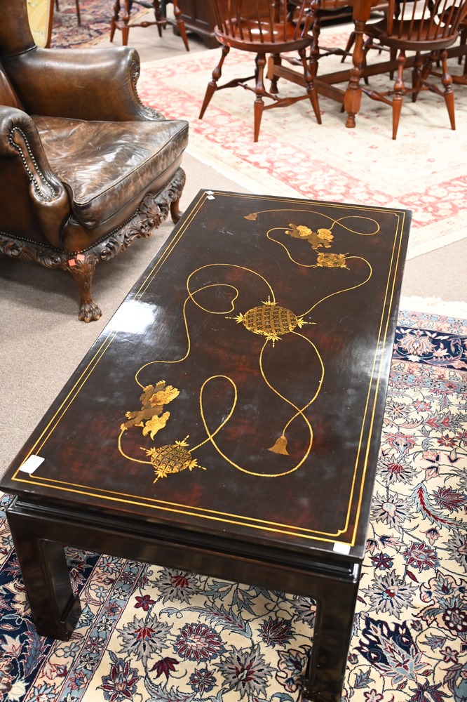 Lot 463: Chinese Style Coffee Table, having high gloss finish, height 17 inches, top 24 x 48 inches, Provenance: Connecticut Personal Collection of American Antiques and Oriental Rugs.