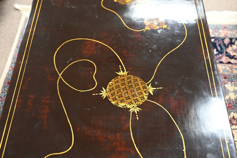 Chinese Style Coffee Table, having high gloss finish, height 17 inches, top 24 x 48 inches, Provenance: Connecticut Personal Collection of American Antiques and Oriental Rugs.