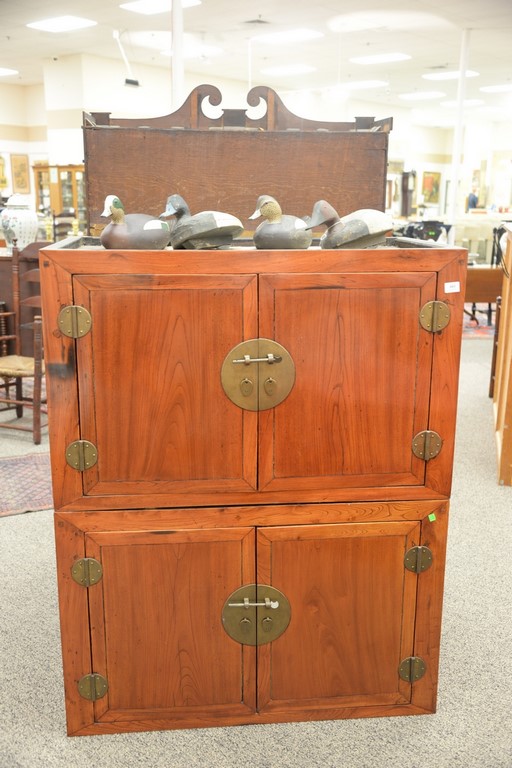 Chinese two part cabinet, each portion with two doors. ht. 54in., wd. 42 1/2in., dp. 23 1/2in.
