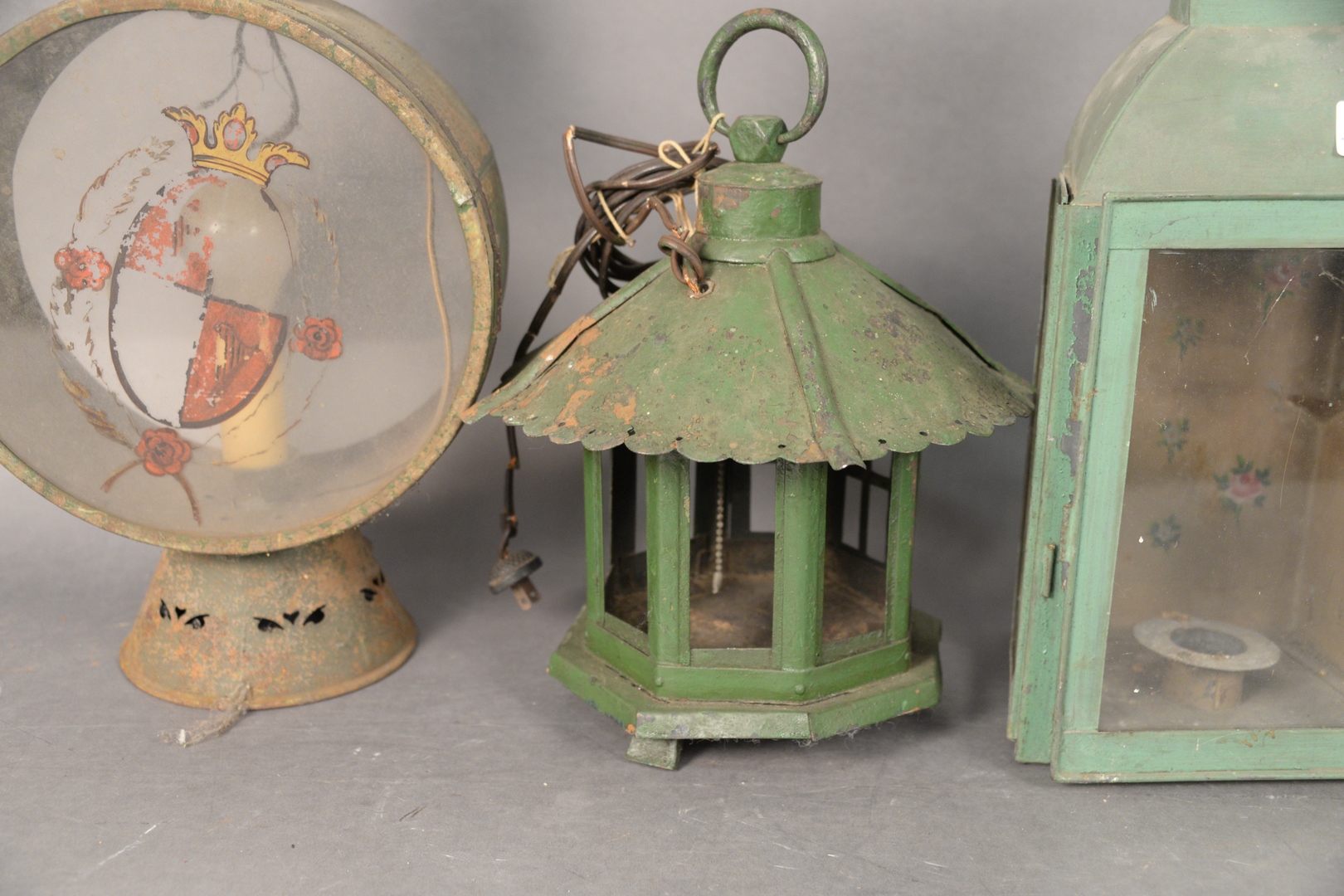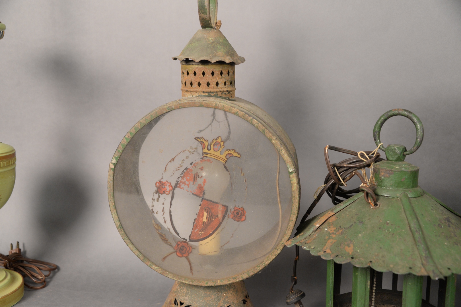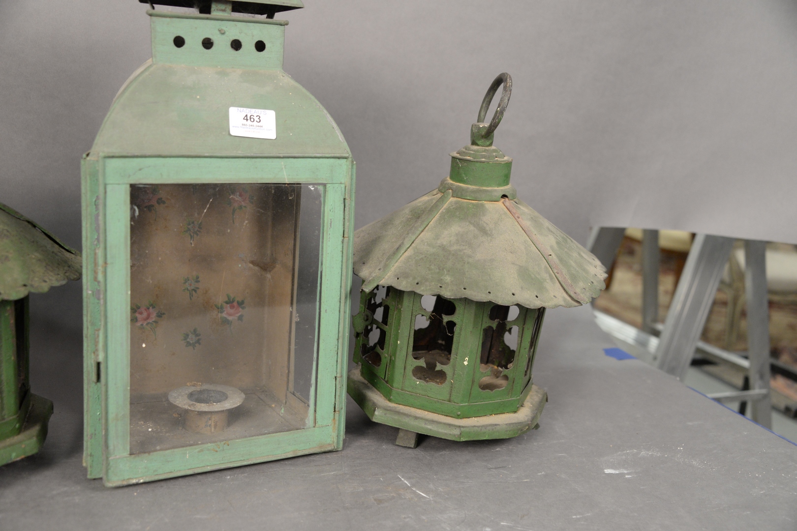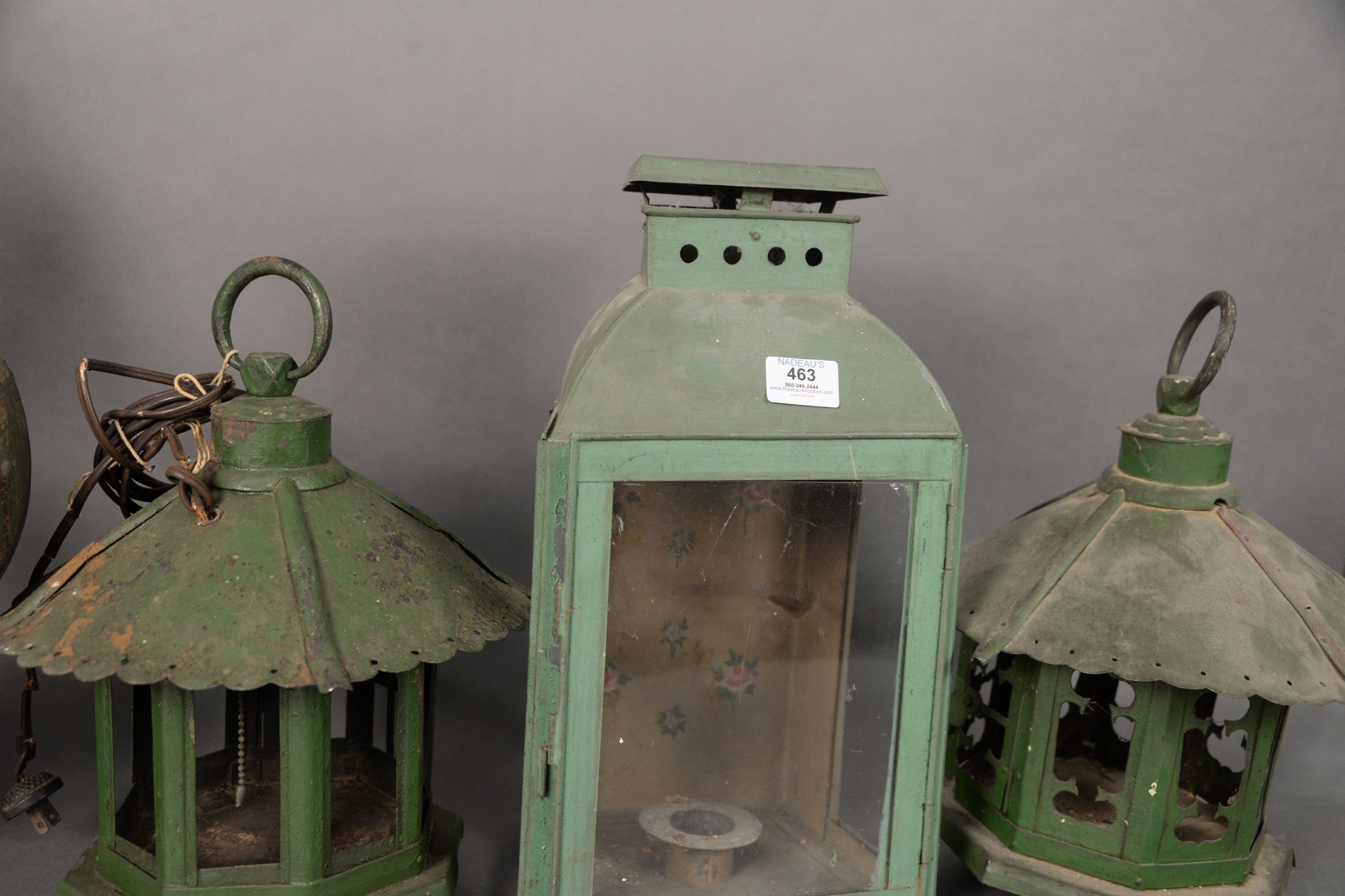 Four Piece Group of Painted Blue Lanterns, largest height 21 inches, width 11 inches.