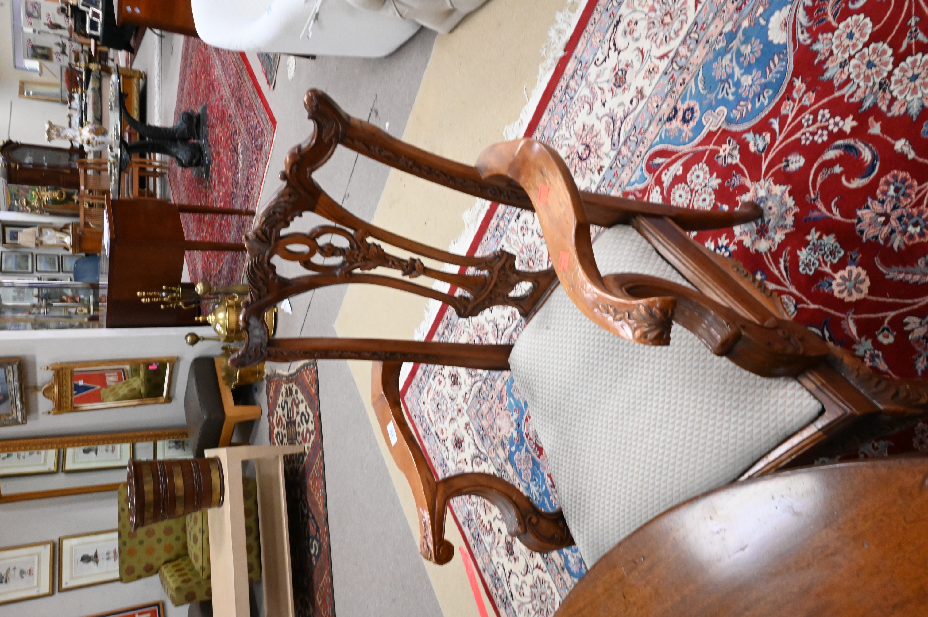 to include two mahogany Chippendale reproduction armchairs along with a pair of Queen Anne style painted chairs