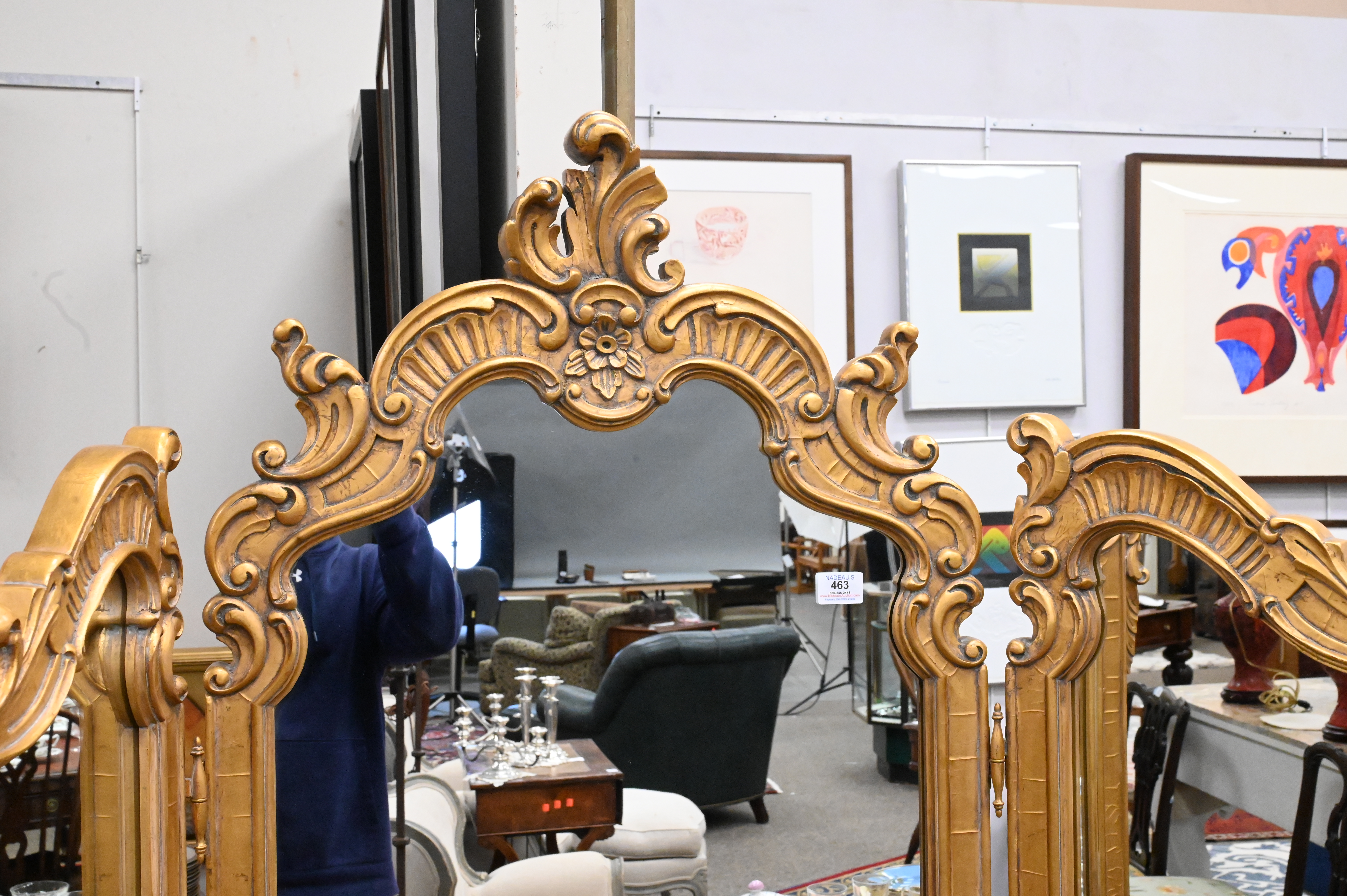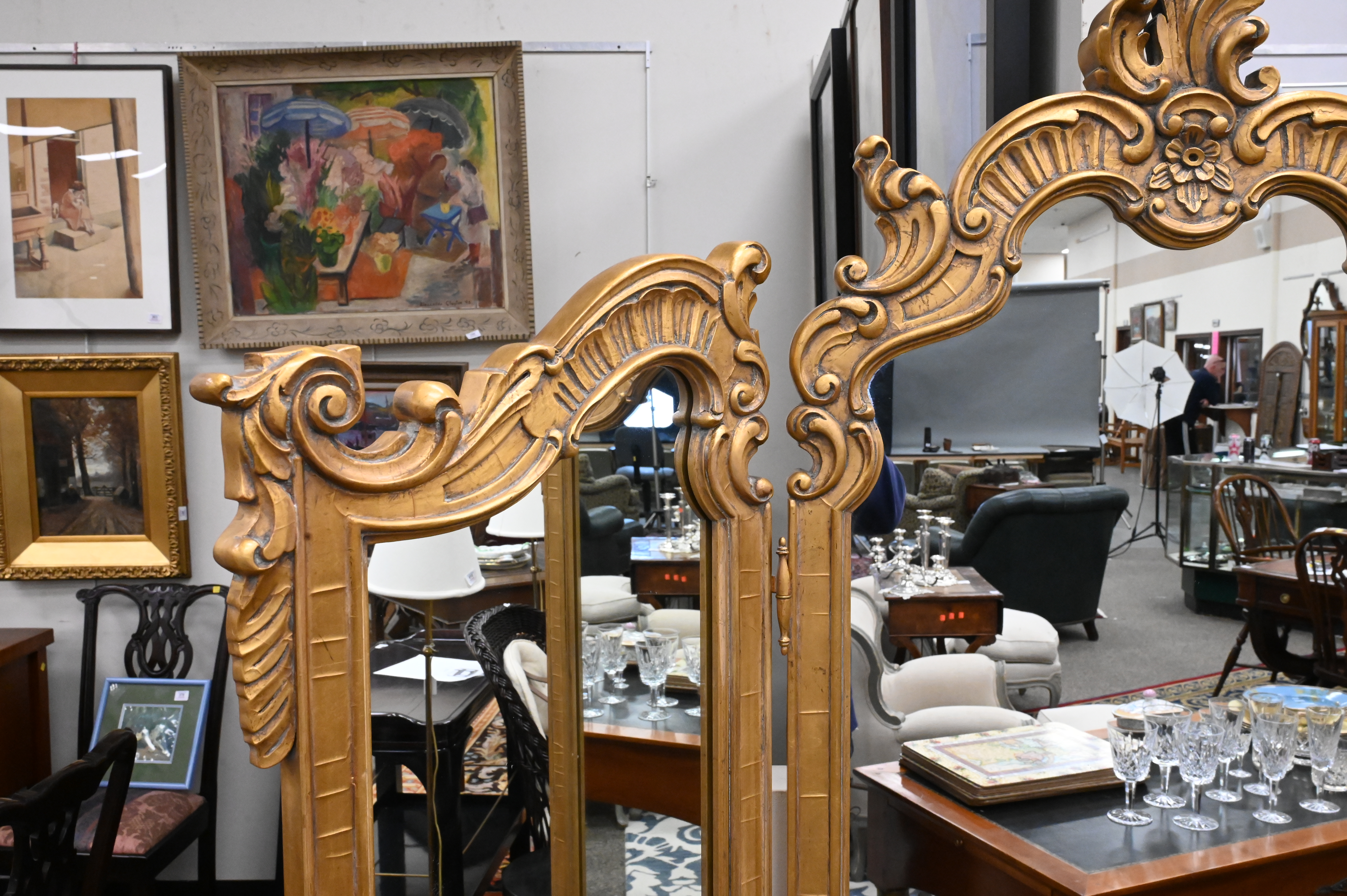 Gilt Three-Part Dressing Mirror, height 76 inches, width 54 inches.
