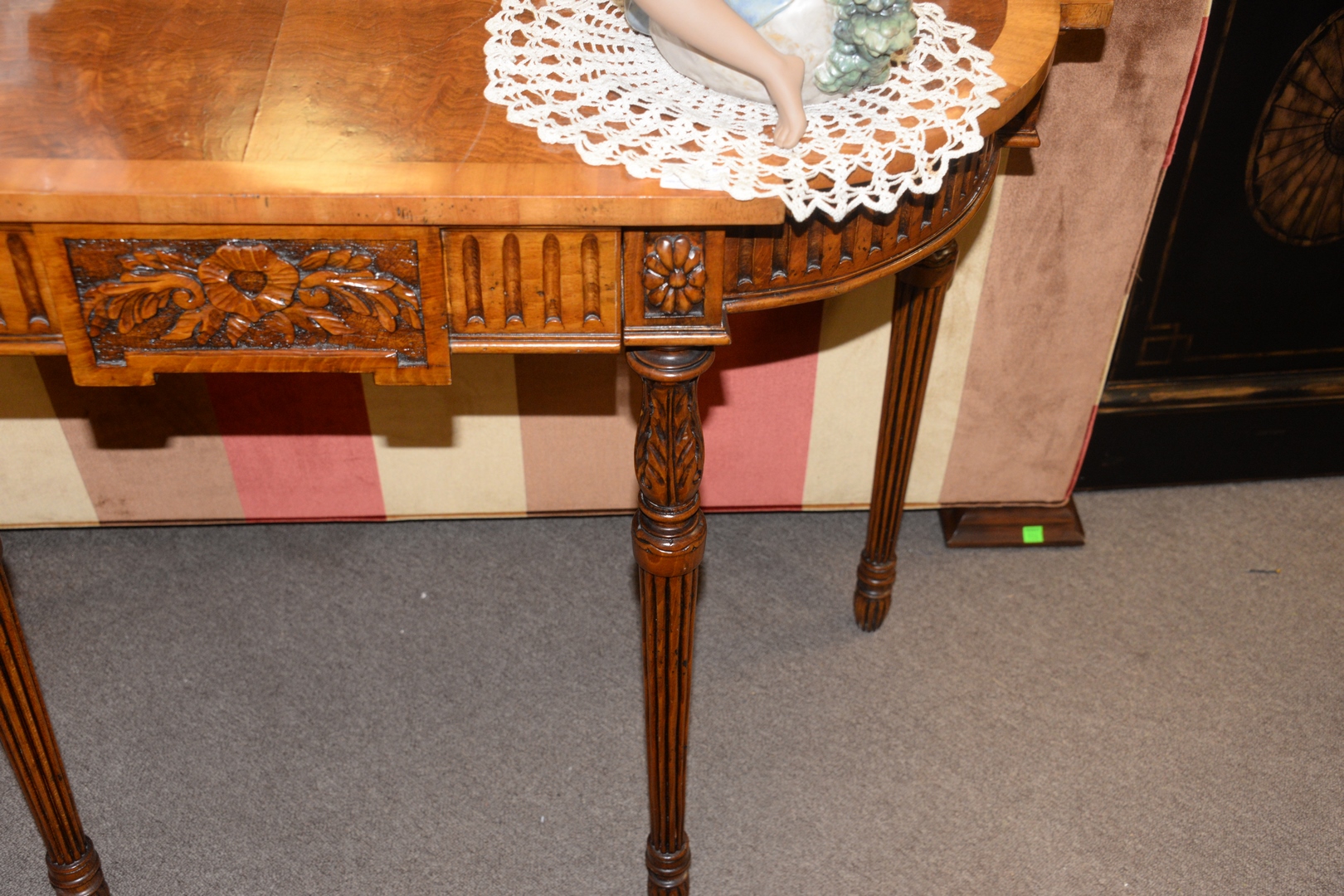 Mahogany Console Table, having banded inlaid top and one drawer, height 31 inches, top 18″ x 42 1/2″. Provenance: David and Cynthia Kim, 22 Stoney Wylde Lane, Greenwich, Connecticut. View home by visiting: https://www.zillow.com/homedetails/22-Stoney-Wylde-Ln-Greenwich-CT-06830/177238281_zpid/