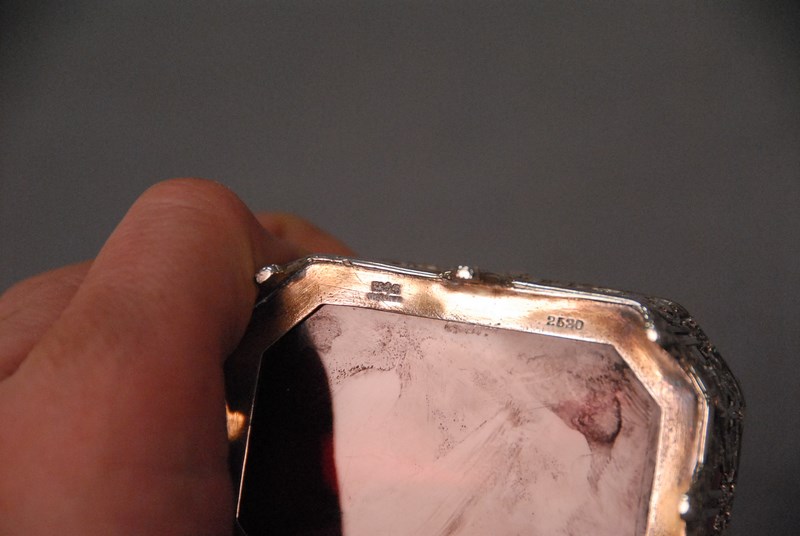 Lot 463: Pair of Gorham silver salts with cranberry liners, cherub and wreath designs. ht. 1 1/2in. wd. 2 1/4in. lg. 3in.