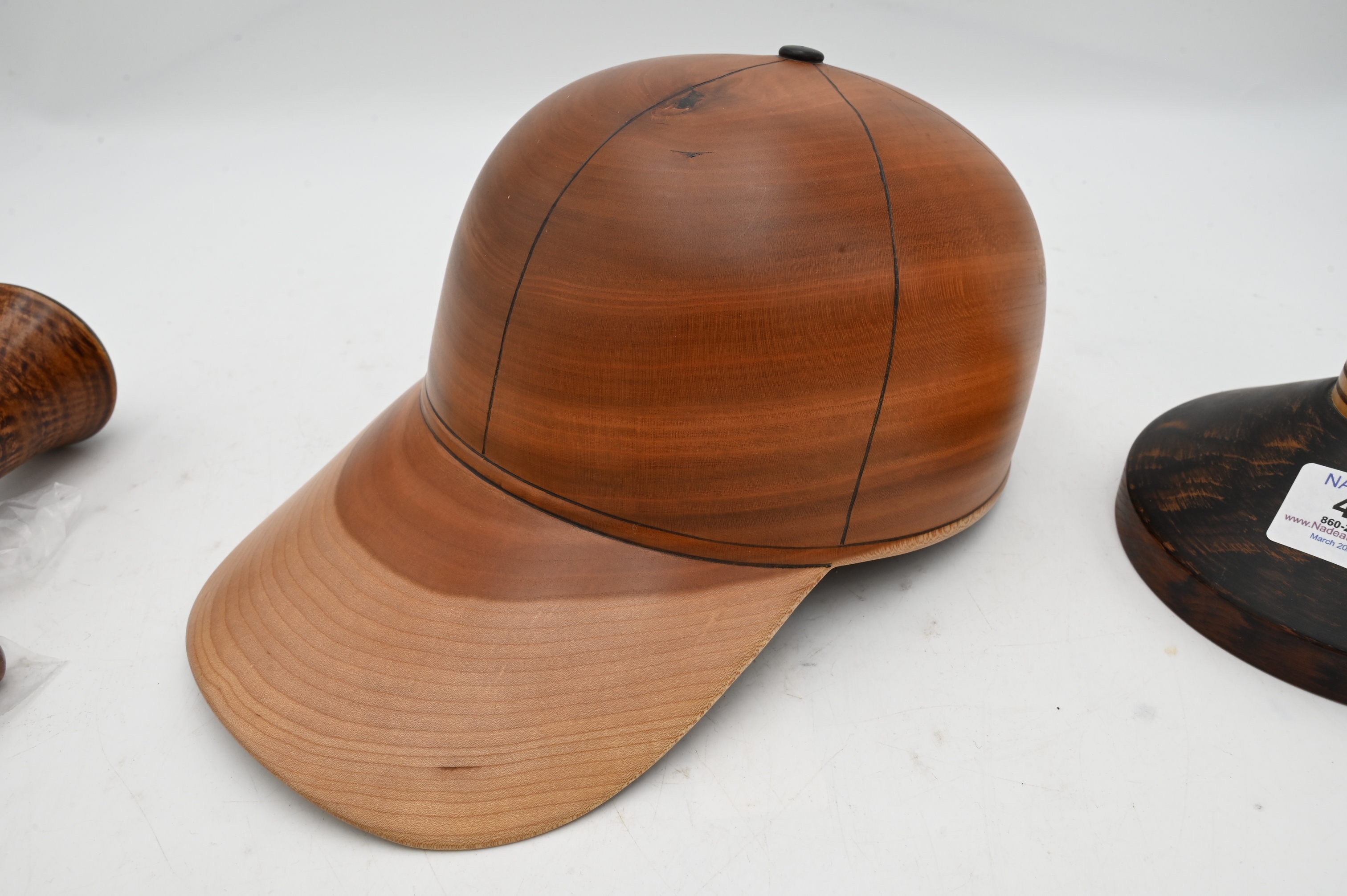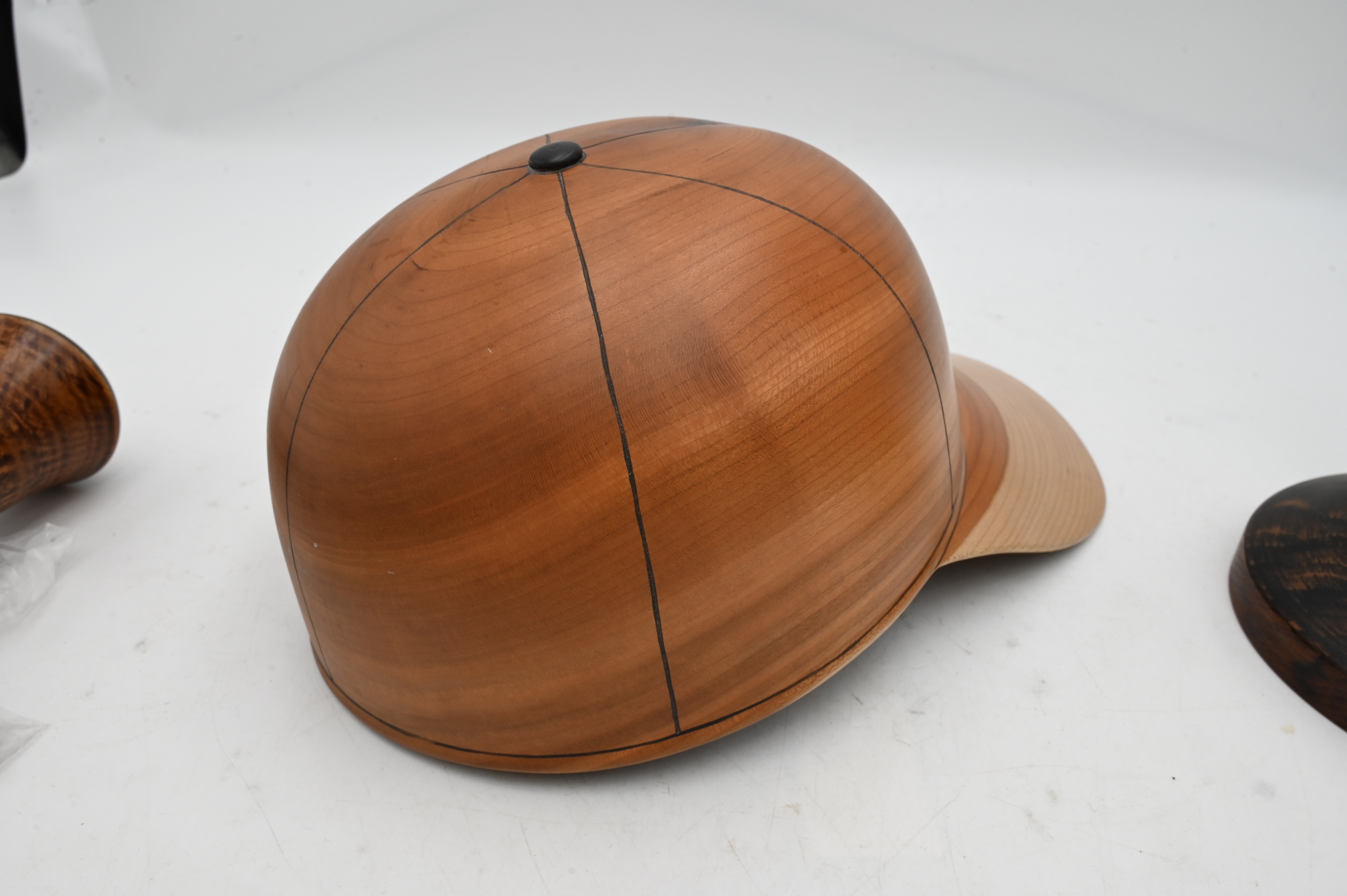 Baseball Cap in Black cherry, #1021, along with a wall mount hat hook,1996, and a hat stand,1998