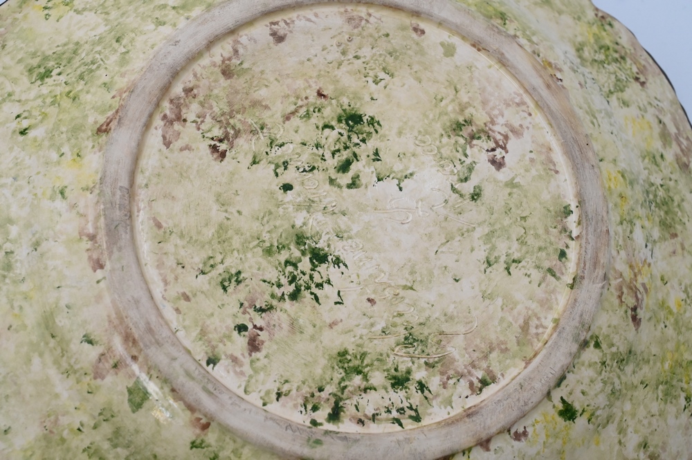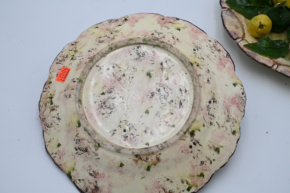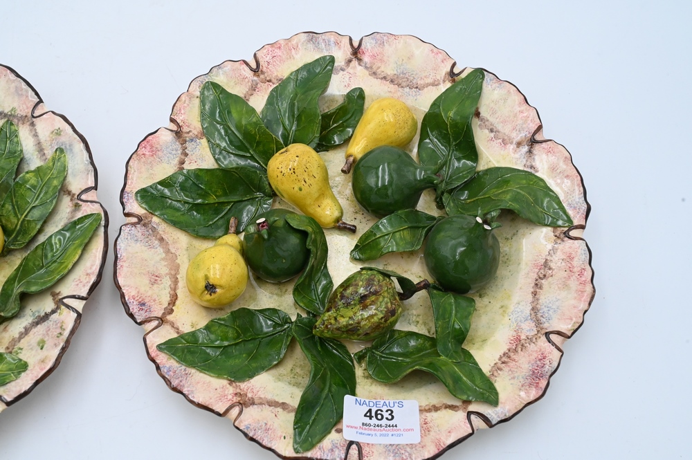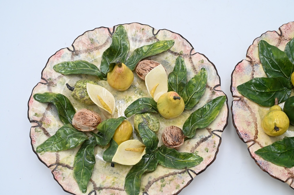 Lot 463: Two Christine Viennet Ceramic Plates, having fruit, vegetable, leaves, flowers and nuts, signed Christine Viennet, France on back, diameter 10 inches, (small chips).