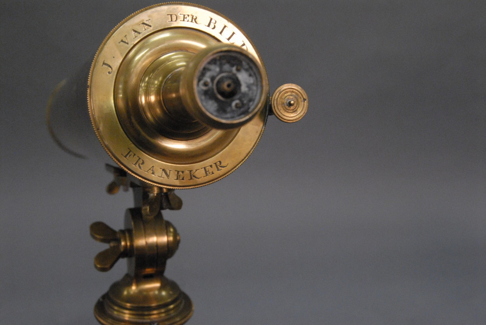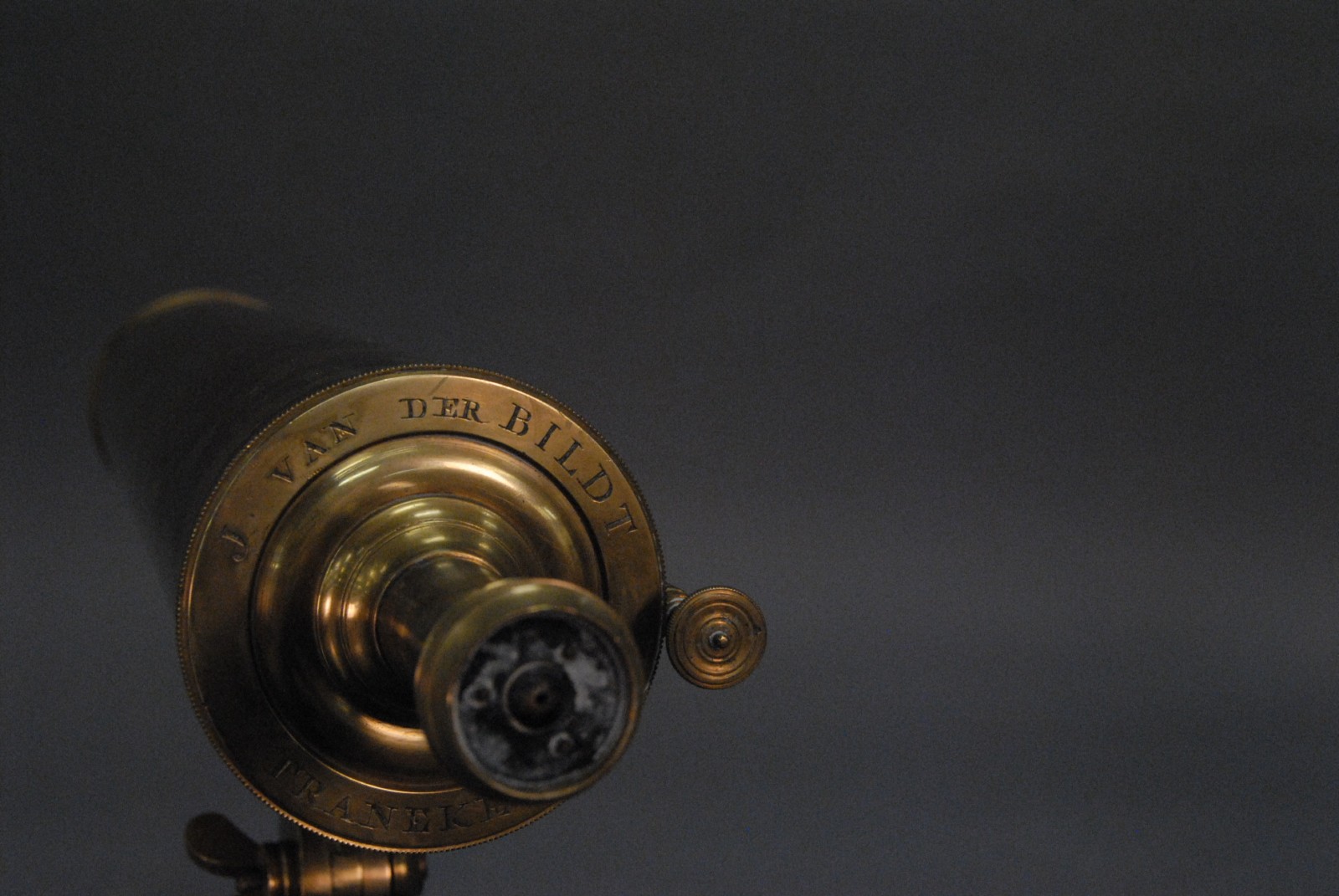 Brass telescope on brass tripod in fitted box signed J. Van Der Bildt Franeker.