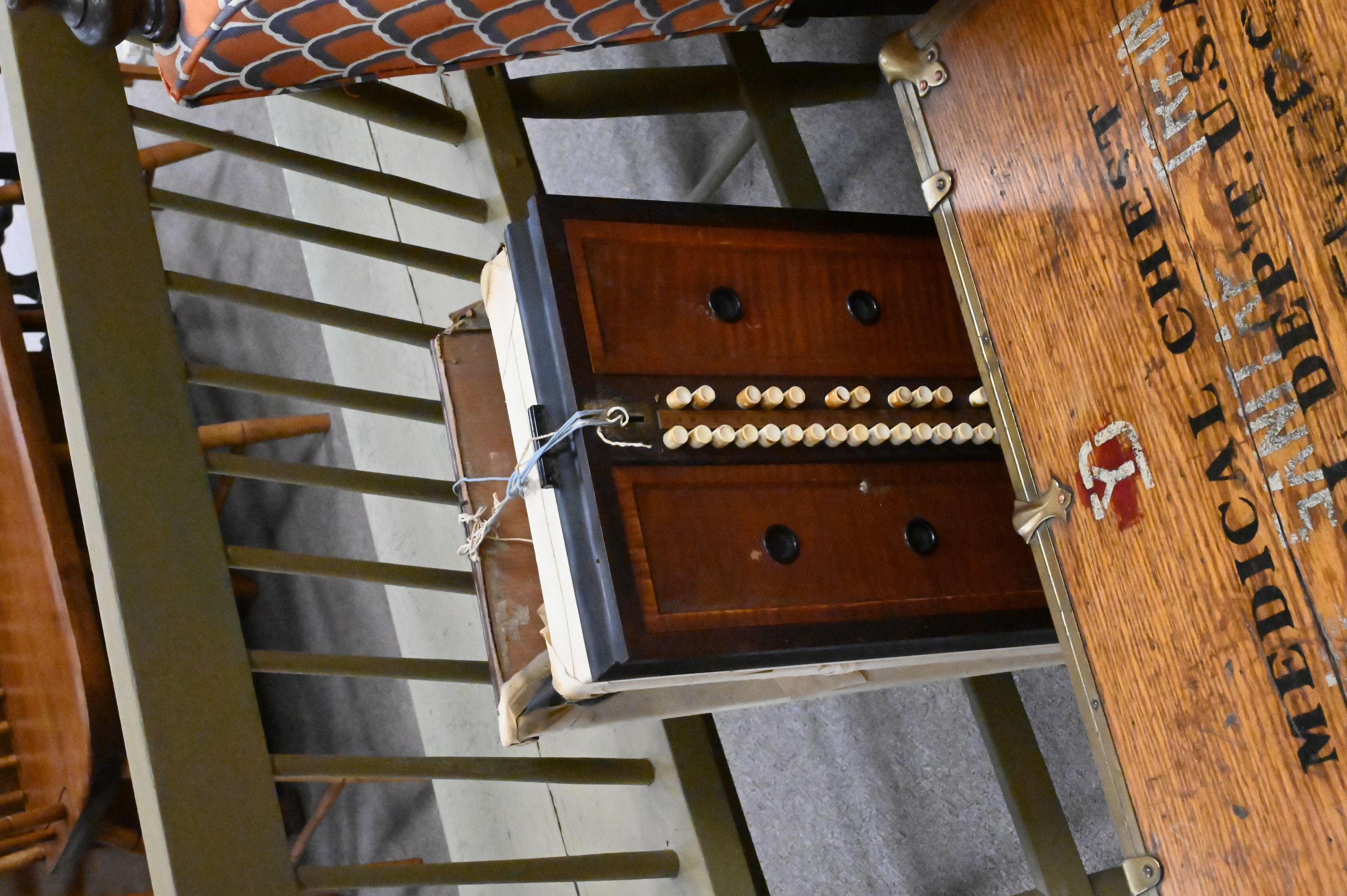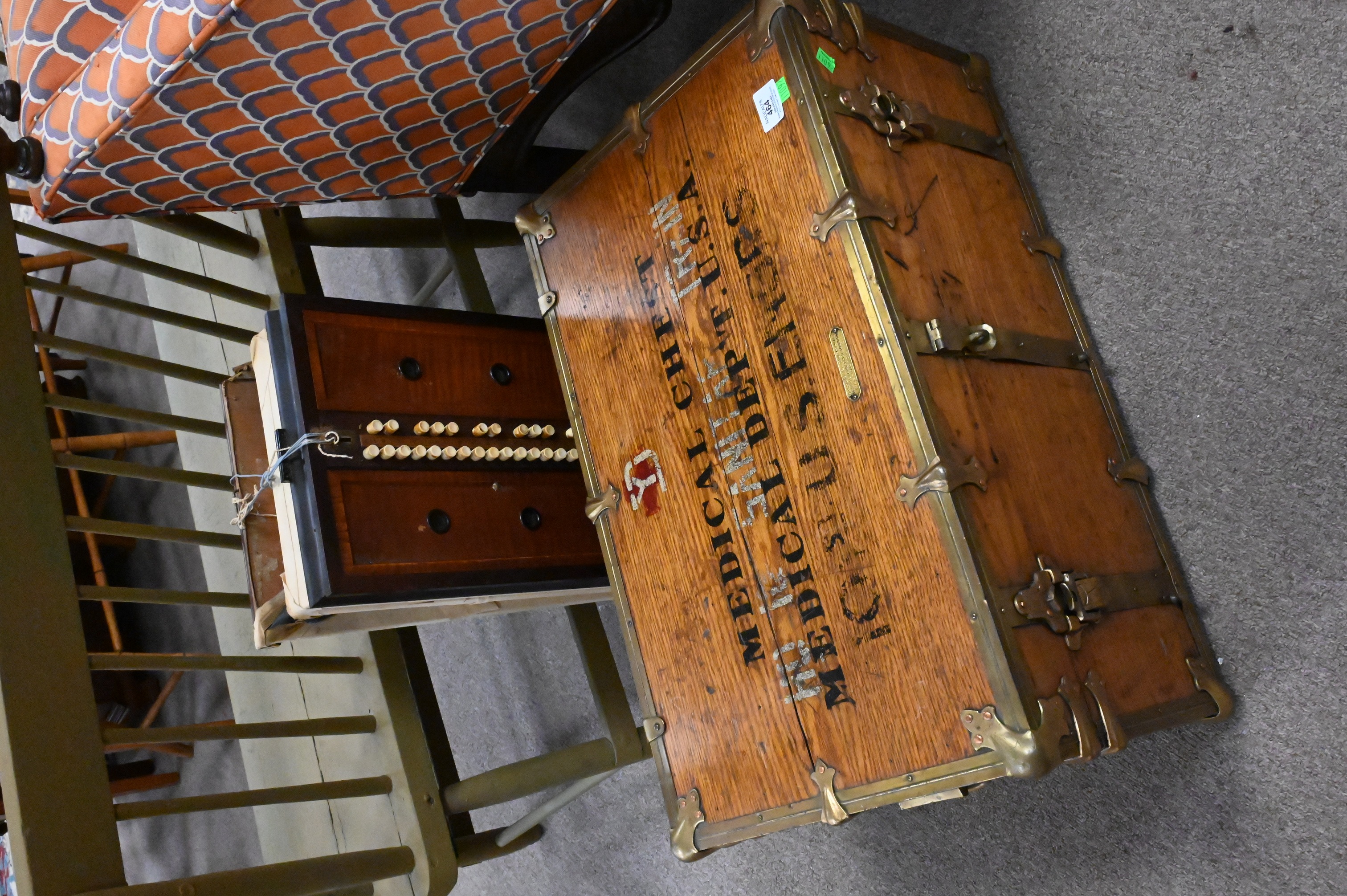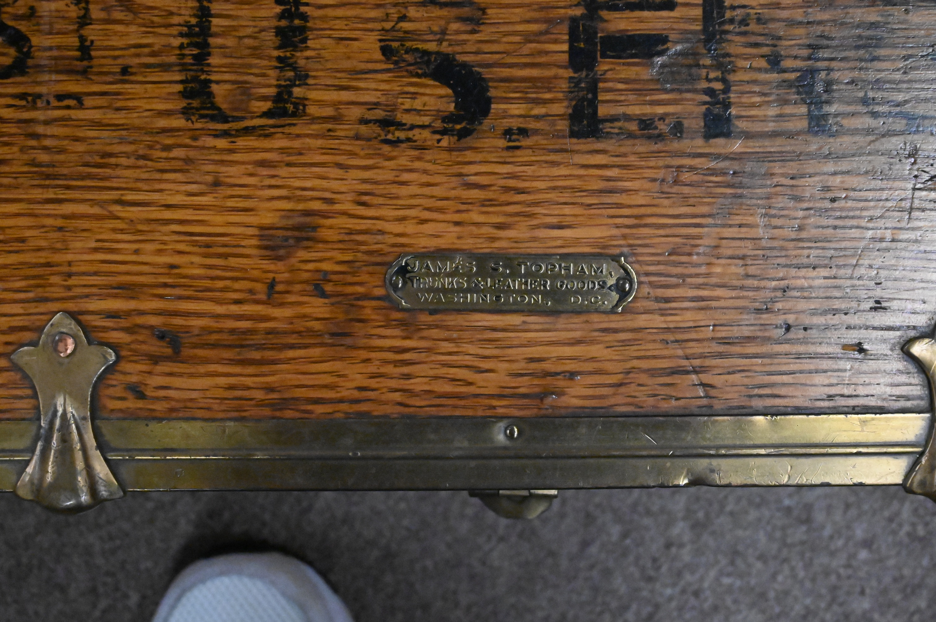 James Topham brass mounted chestnut wood WWI U.S. Army medical chest, circa 1910 “Yankee Division” France, height 12 1/2 inches, top 16″ x 26″