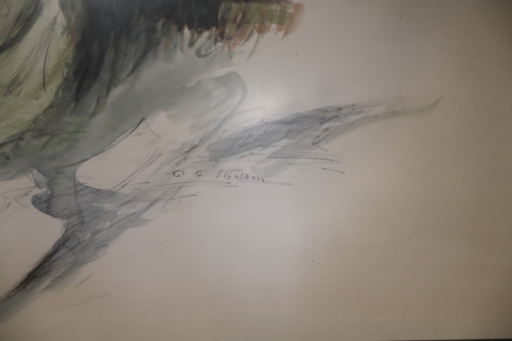 Lot 465: Charles Sheldon (American, 1889-1960), Illustration Glamour, watercolor and pencil on paper, signed “C.G. Sheldon”, sight size 16″ x 24″.