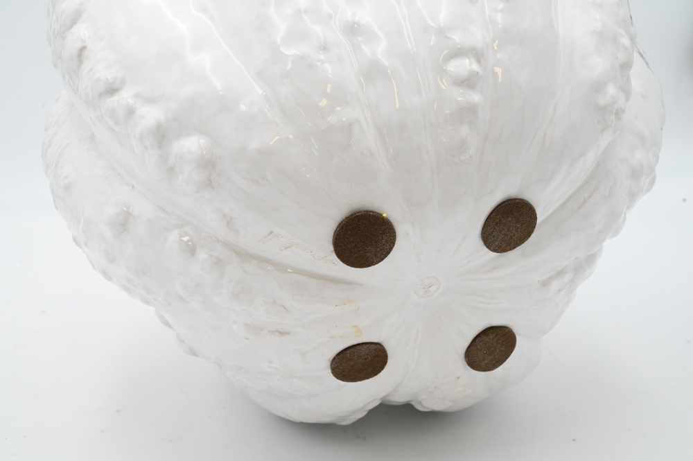 Lot 465: Jean-Paul Gourdon (b. 1956), white glazed ceramic pumpkin with bronze stem, signed J.P. Gourdon on bottom, height 15 inches.