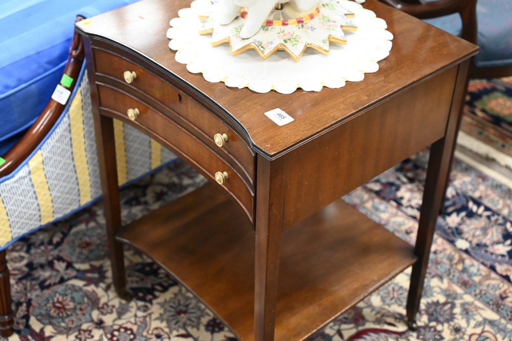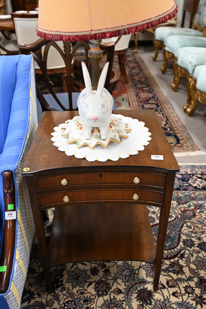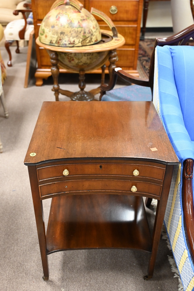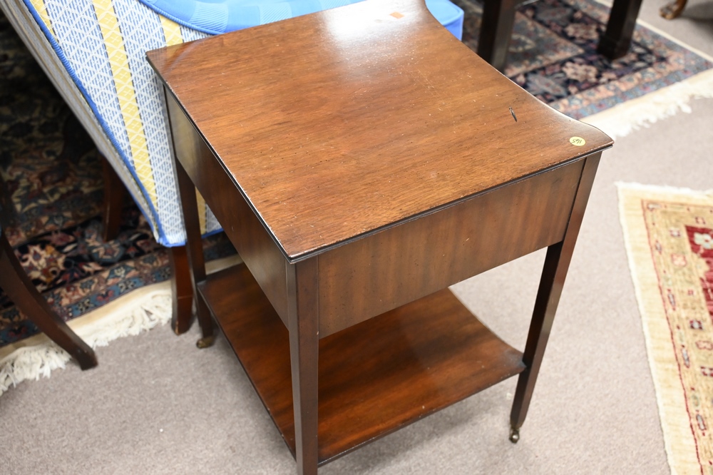 Lot 465: Pair of Kittinger Custom Mahogany Bedside Tables, having one drawer, height 29 inches, top 18 x 19 inches.