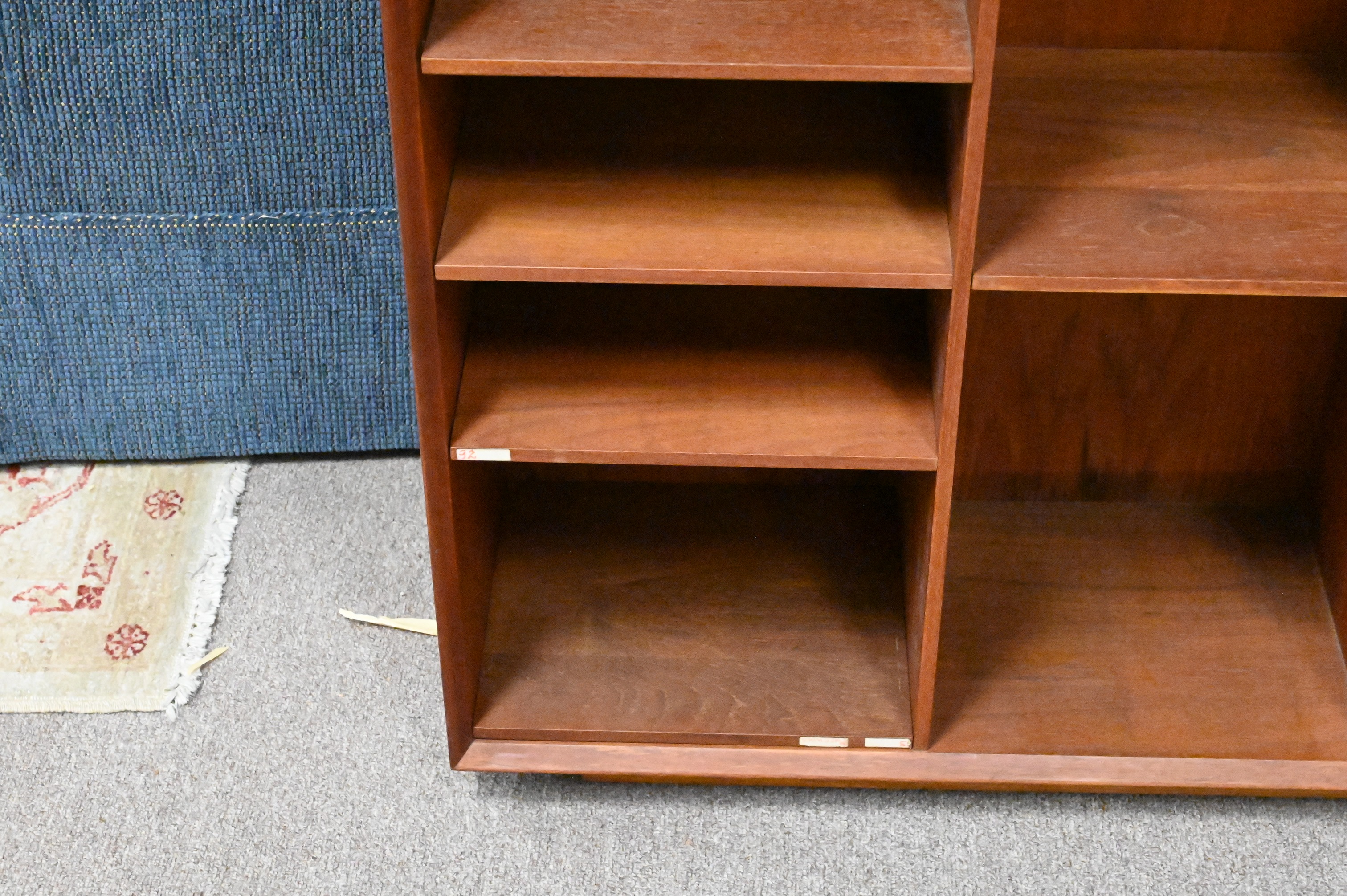 in two parts, having Soborg Mobler tag on back, can be separated into two stand alone bookcases if desired