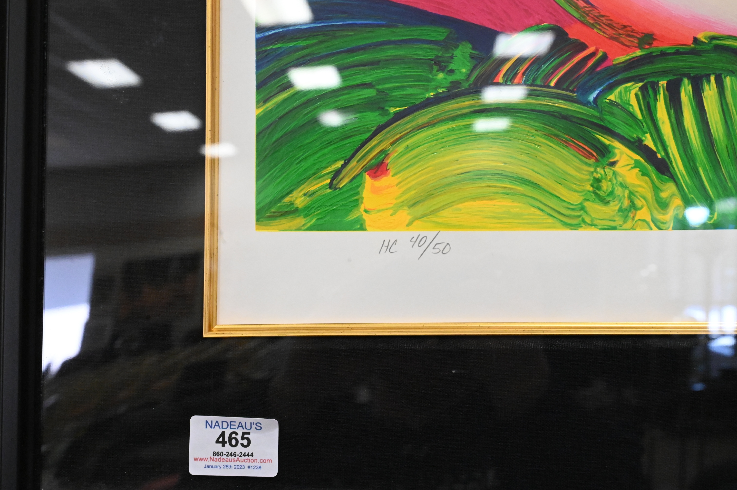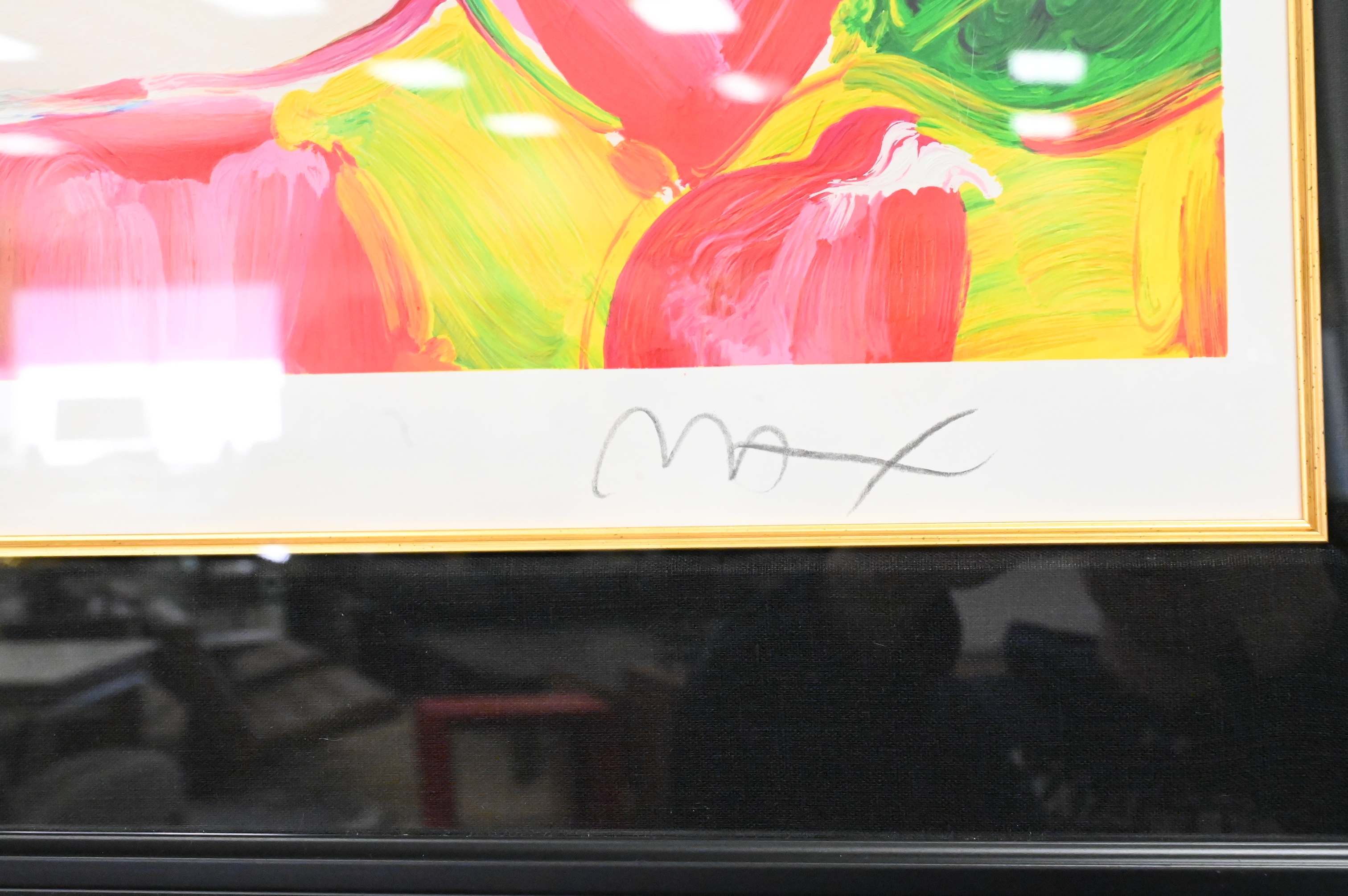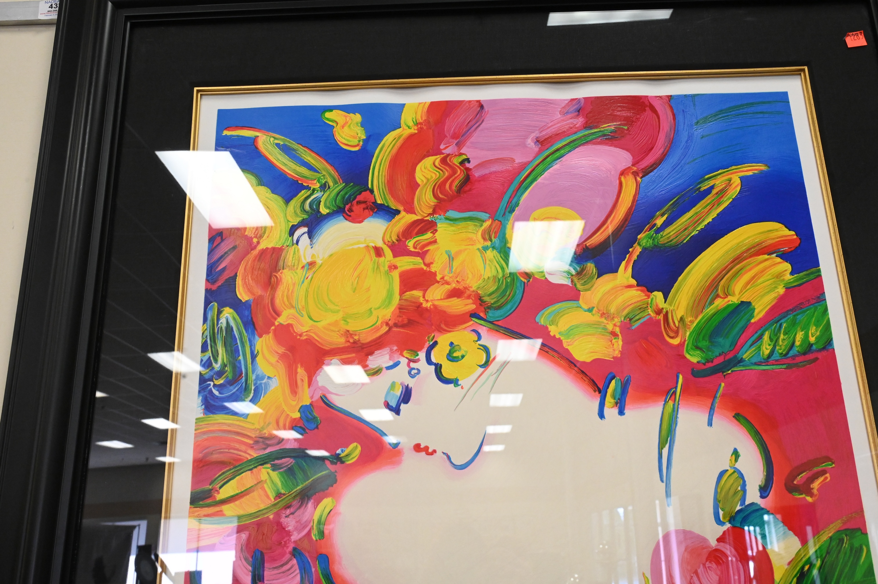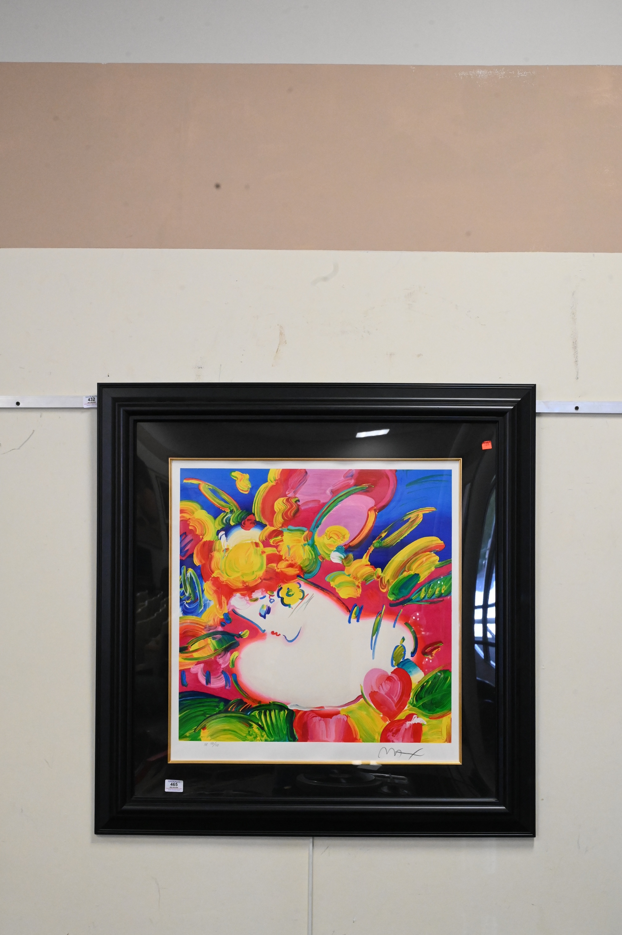 Peter Max (b. 1930), screenprint in colors, Flower Blossom Lady, signed lower right Max, numbered lower left HC 40/50, 25″ x 24″.