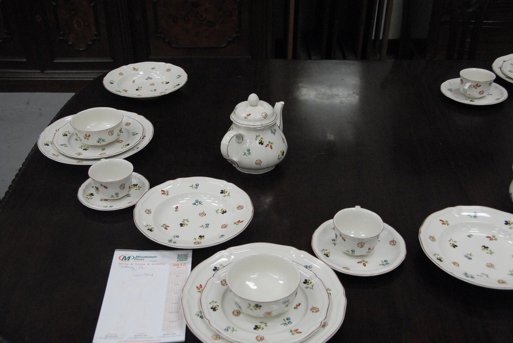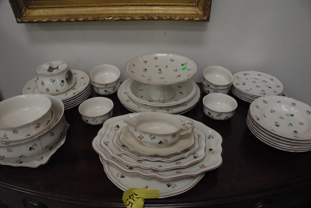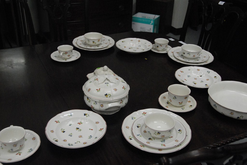 Lot 465: Villeroy & Bach Petite Fleur pattern dinnerware setting for twelve plus service piece, 120 total pieces some slight damage. Pr…..