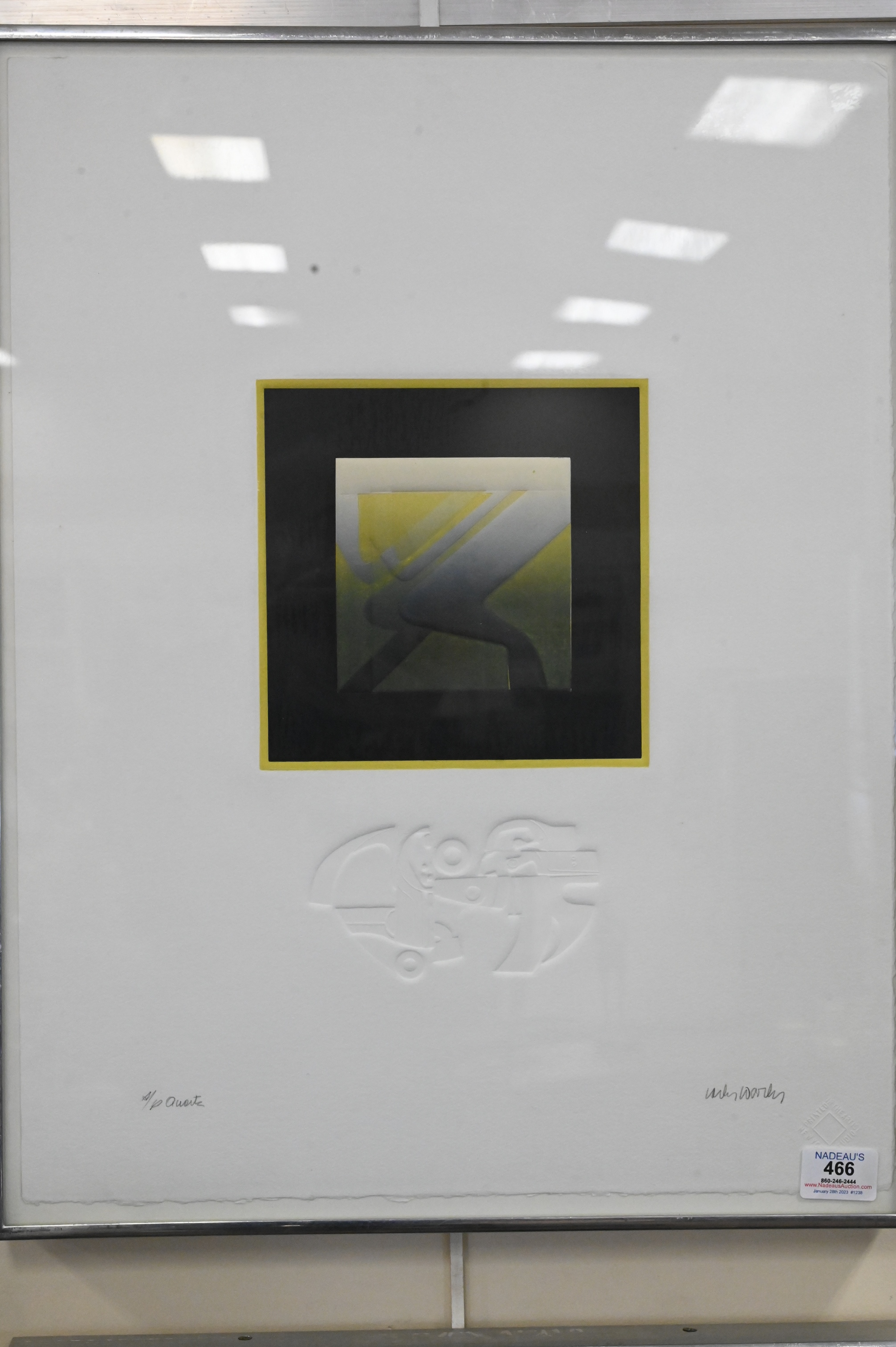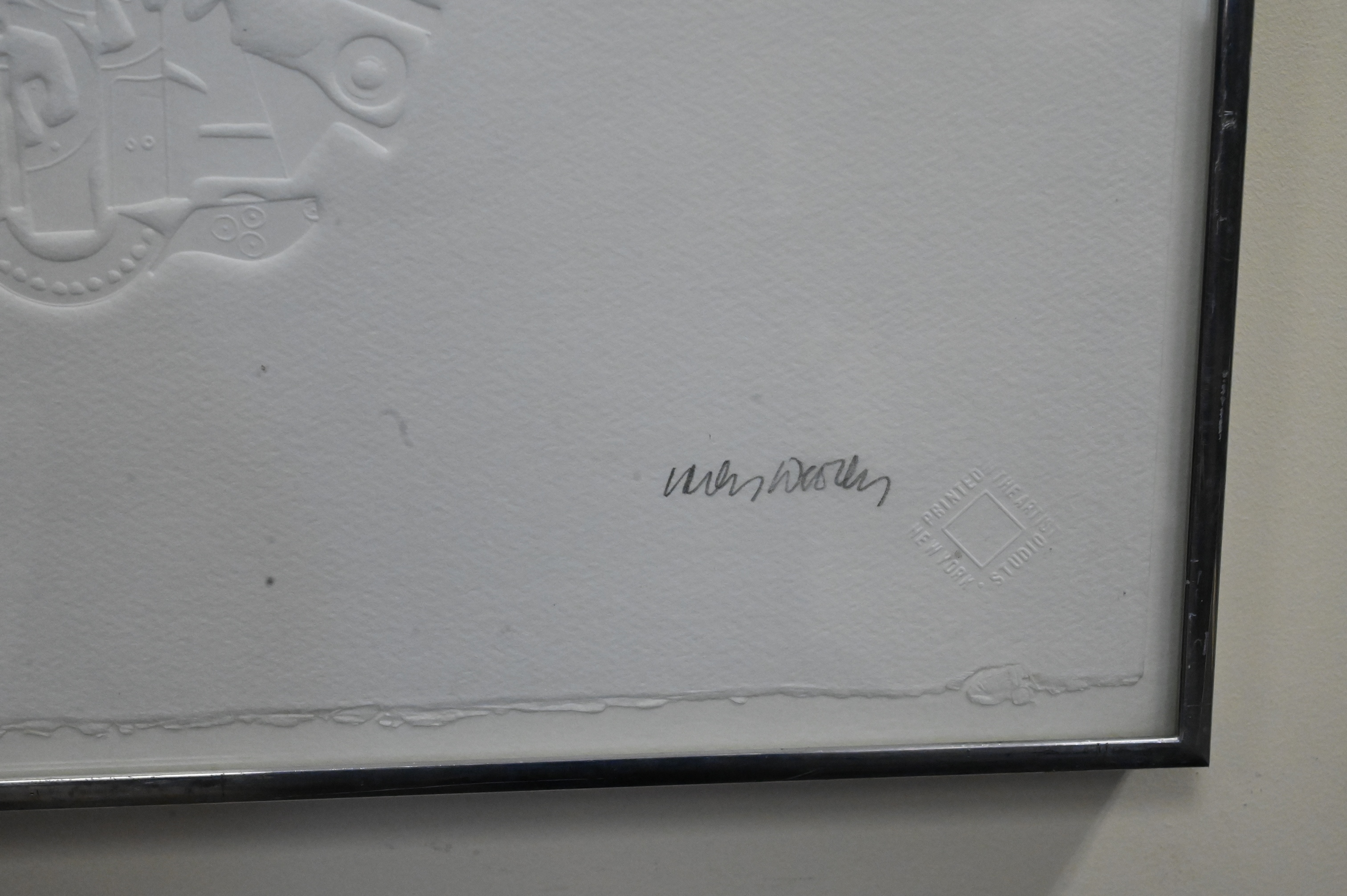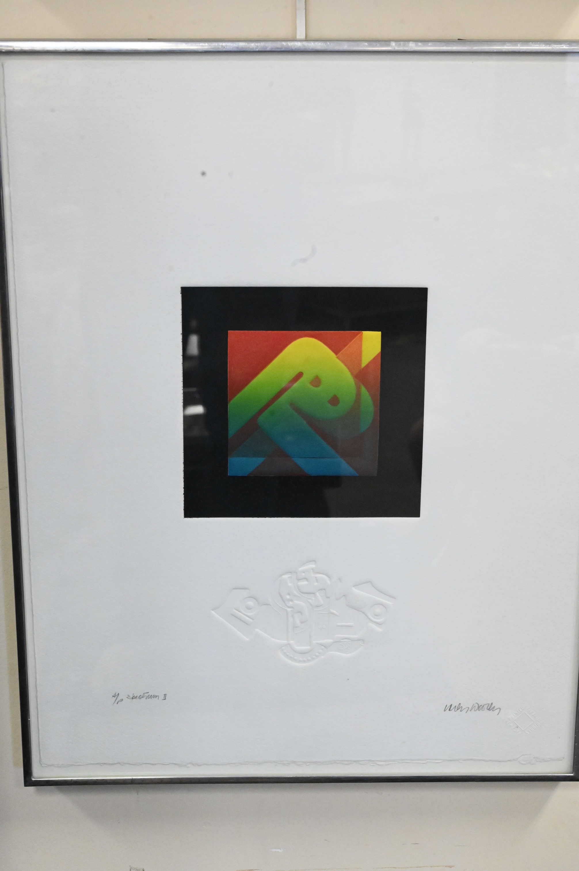 A Pair of Embossed Etchings, unknown artist, Spectrum II, sight size 22″ x 17″, pencil signed, titled and numbered; etching on paper, unknown artist, untitled, sight size 22″ x 17″.