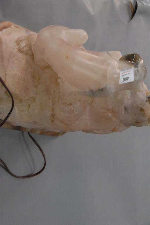 Carved alabaster sculpture of lion figure and frog night light. ht. 13in.