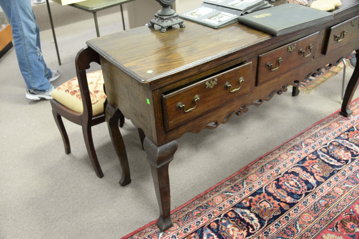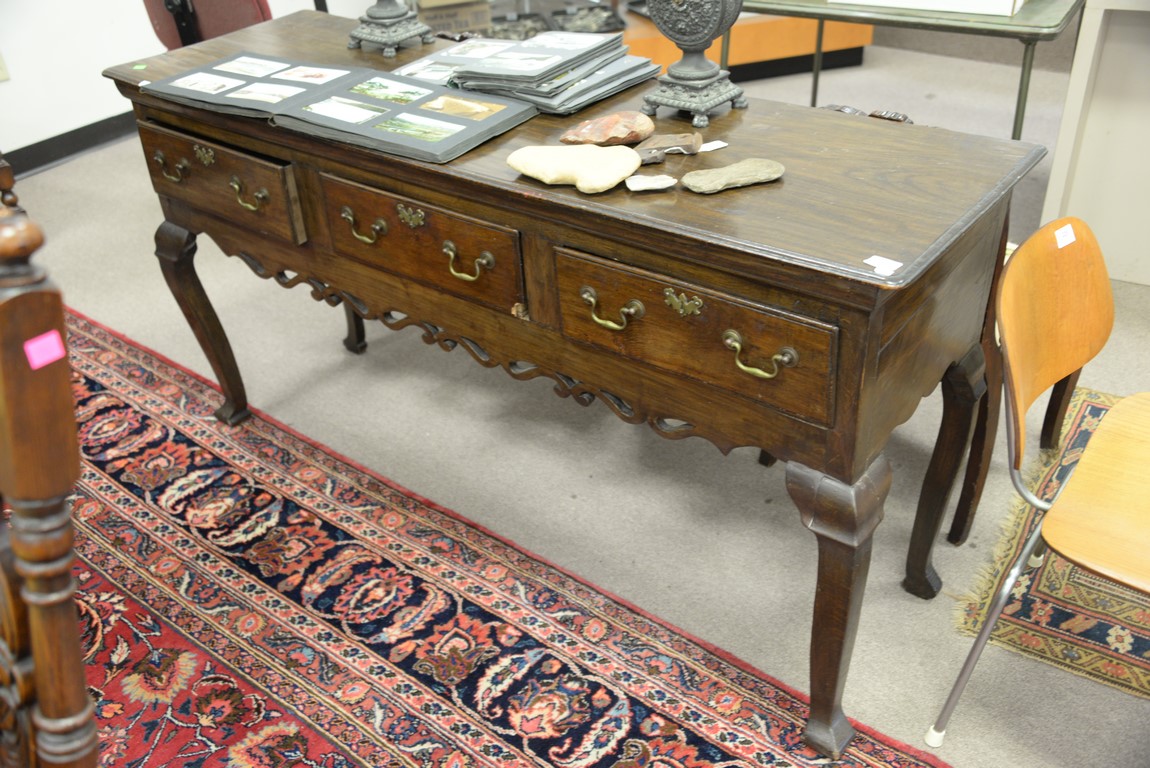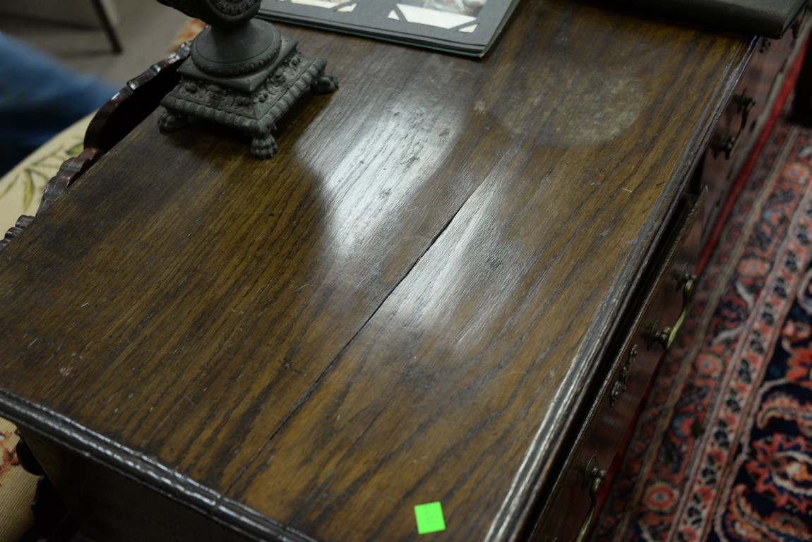 English oak hunt board chip on drawer. ht. 33 in. wd. 64 in. dp. 19 1/2 in.