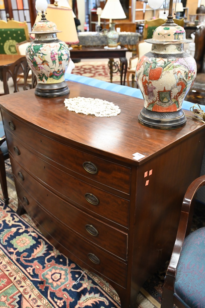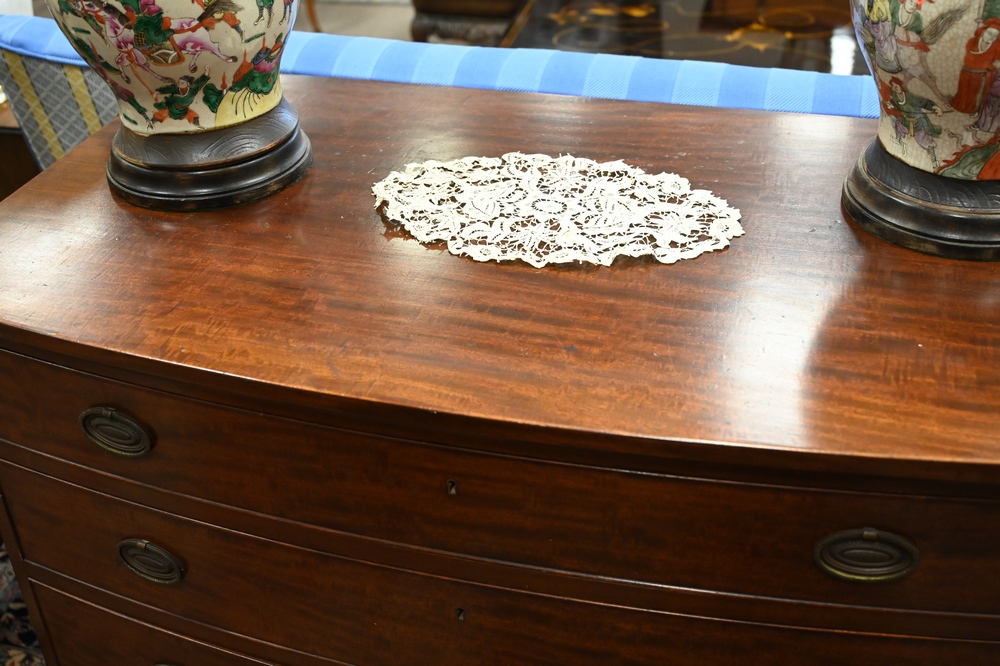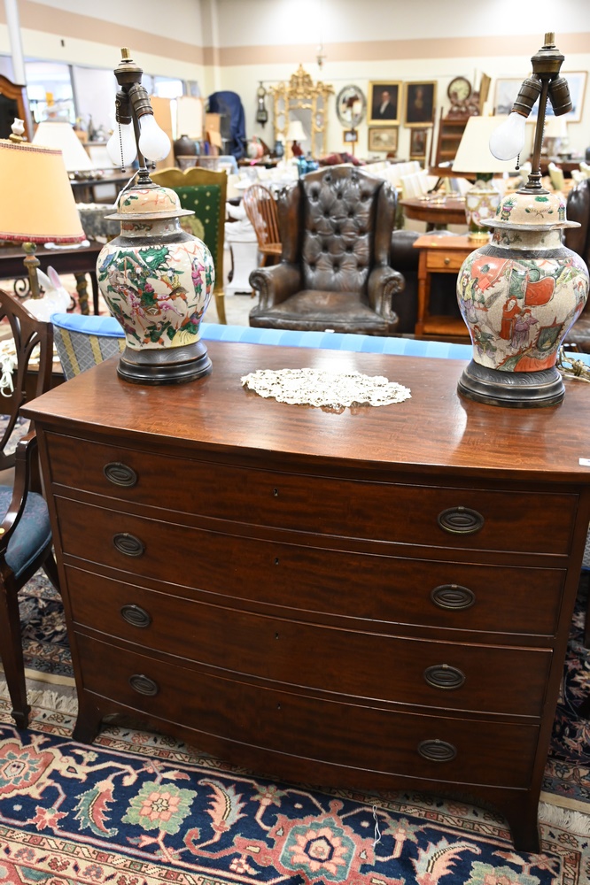 Lot 466: Irving & Casson A.H. Davenport Custom Mahogany Federal Style Bowed Front Chest, top with imperfections in finish, height 33 inches, width 42 inches.