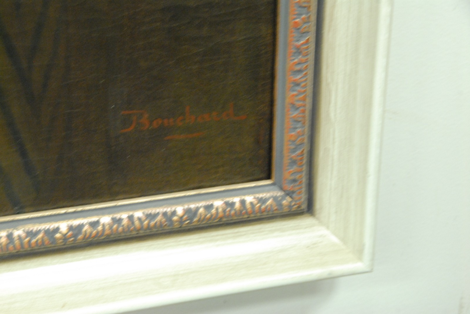 Pierre Francois Bouchard 1831 – 1889 YOUNG MAIDEN WITH BASKET OF FLOWERS oil on canvas signed lower right Bouchard 19th century relined. Provenance: Governor Henry Roberts Edward Roberts 1110 Prospect Ave Hartford to present owner.