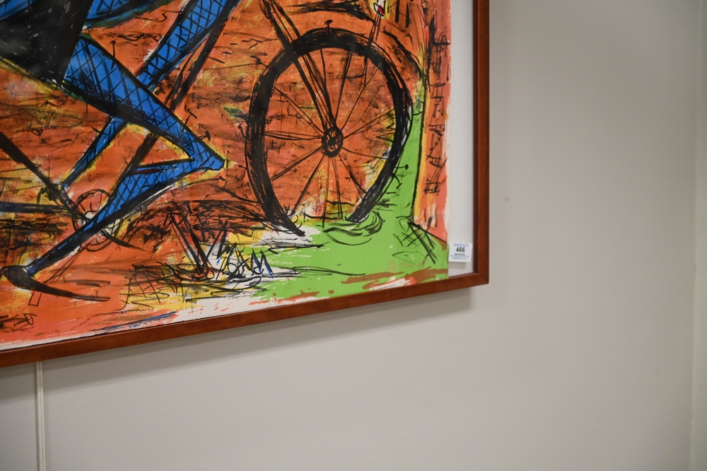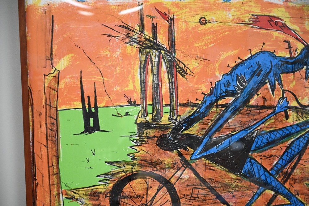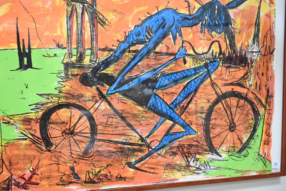 Lot 466: Rick Prol (American, b. 1956), SOS, 1985, lithograph and silkscreen in colors on paper, signed, dated, and editioned lower right “39/100″, 31″ x 42”.