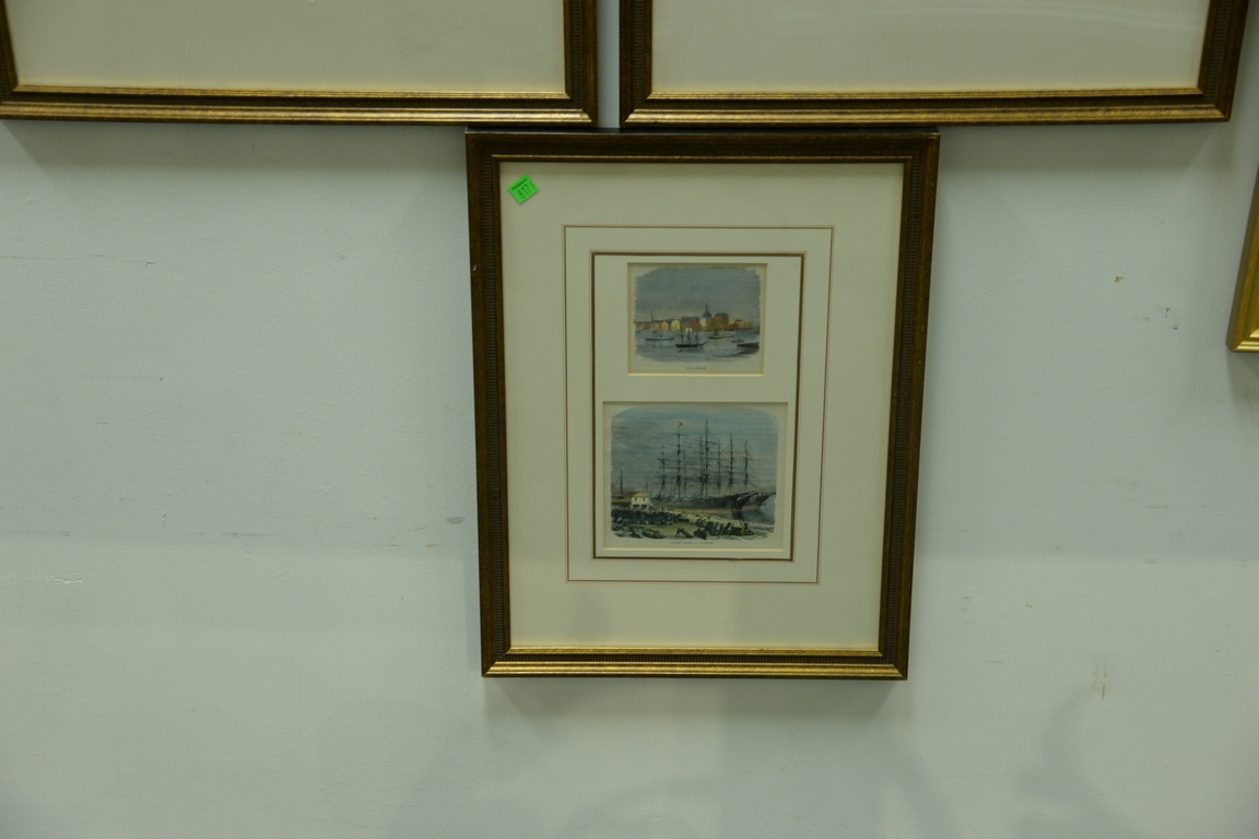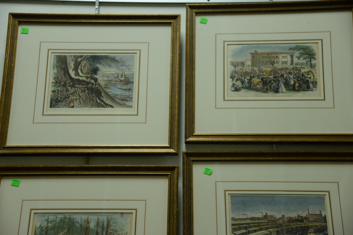 Set of nine colored wood engravings, mostly Georgia scenes. sight size 4 1/2 x 6 1/4 to 4 1/4 x 9 3/4 Provenance: Property from Credit Suisse’s Americana Collection