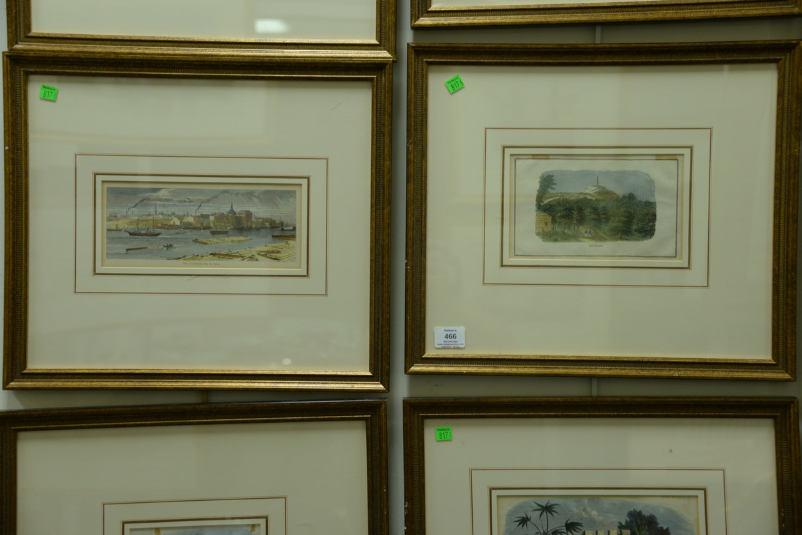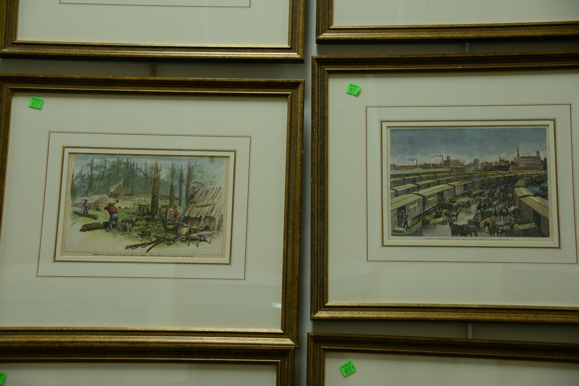 Lot 466: Set of nine colored wood engravings, mostly Georgia scenes. sight size 4 1/2 x 6 1/4 to 4 1/4 x 9 3/4 Provenance: Property from…