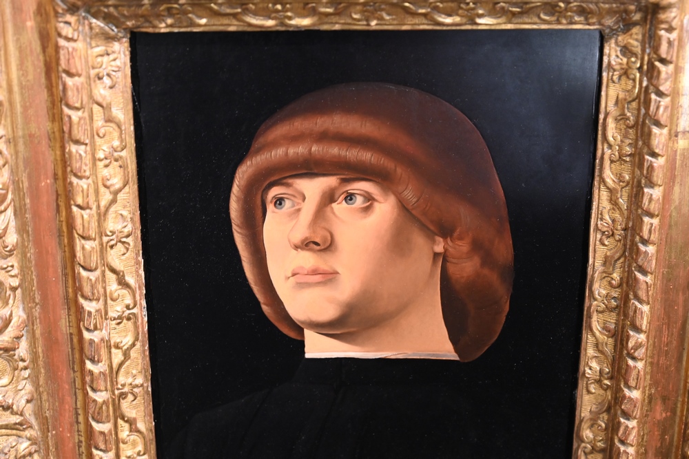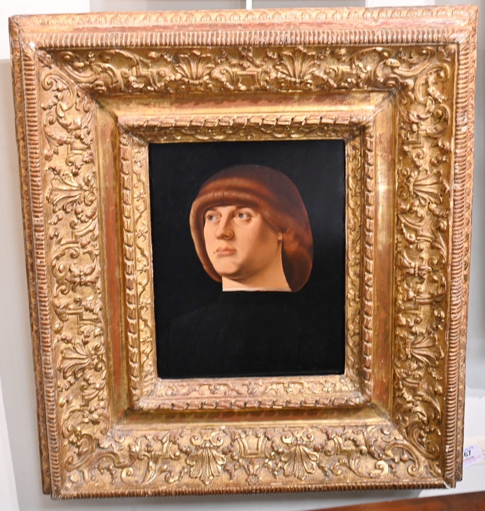 Lot 467: After Jacometto Veneziano copy of “Portrait of Young Man” oil on panel unsigned 12 x 9 1/2 inches
