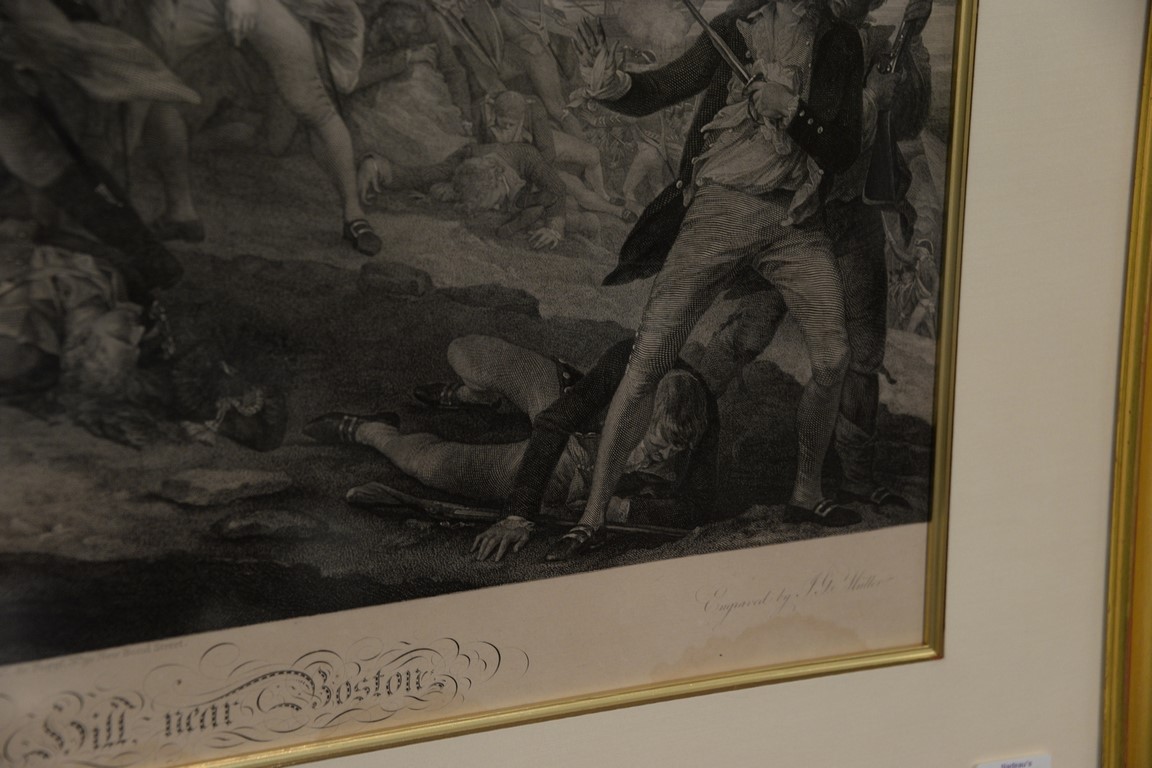 After John Trumbull, engraving, The Battle at Bunker’s Hill Near Boston, engraved by J.G. Muller and published by A.C. de Poggi 1798, 22 1/4 x 30 1/2 Provenance: Property from Credit Suisse’s Americana Collection