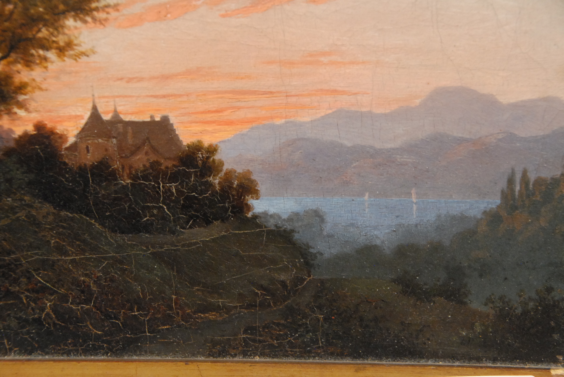 Lot 467: Austrian School oil on board landscape 19th century 6 x 10