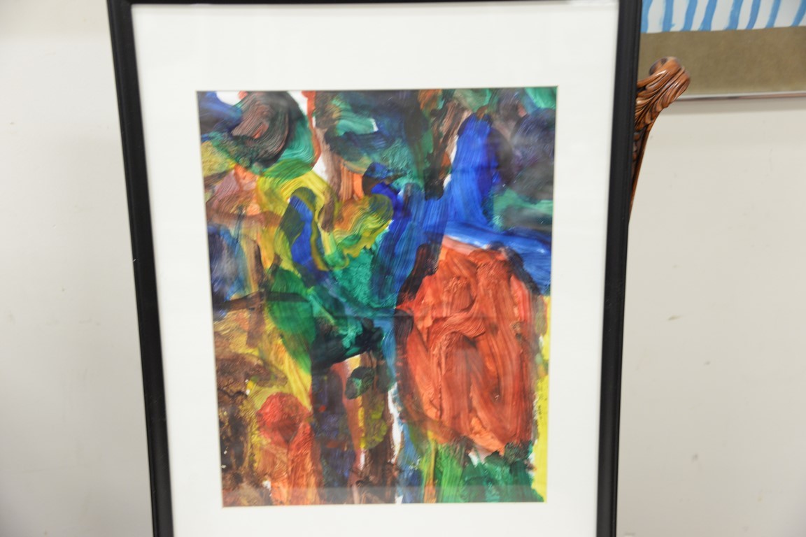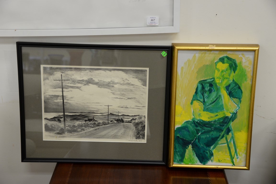 Lot 467: Large group of fourteen miscellaneous lithographs, prints, and paintings to include Clive Van der Berg monotype untitled, No Man is …