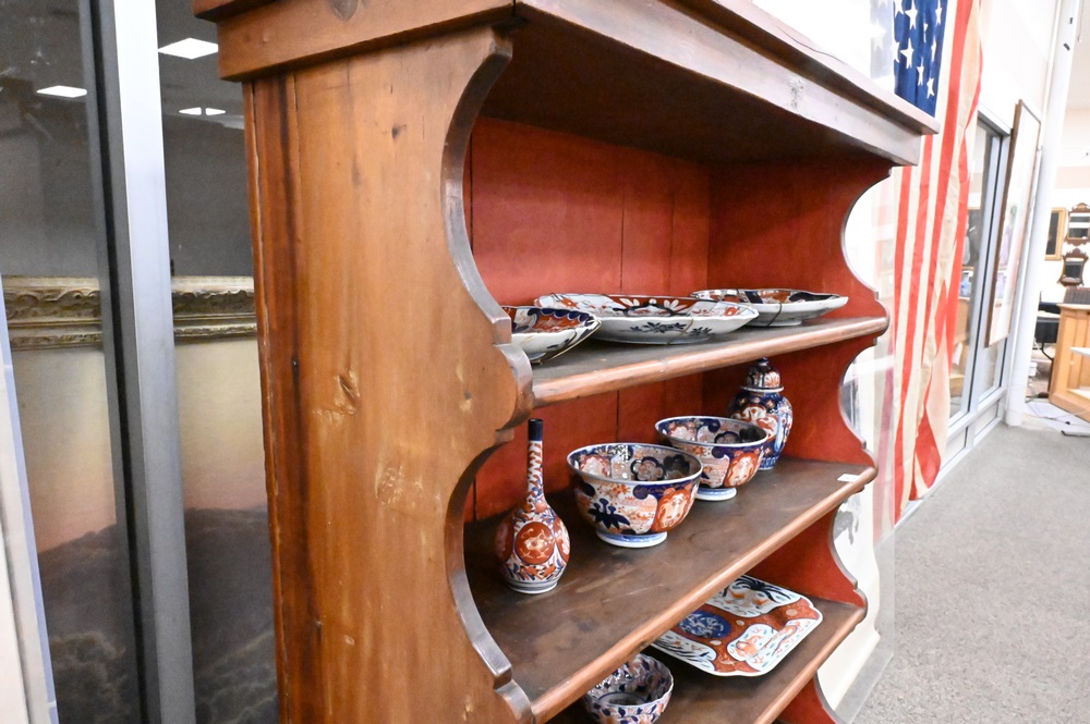 Lot 467: Primitive Cupboard, having open top, 19th century, height 69 inches, width 37 inches. Provenance: Estate of Florence Yannios, Waterfront Home, Guilford, CT.
