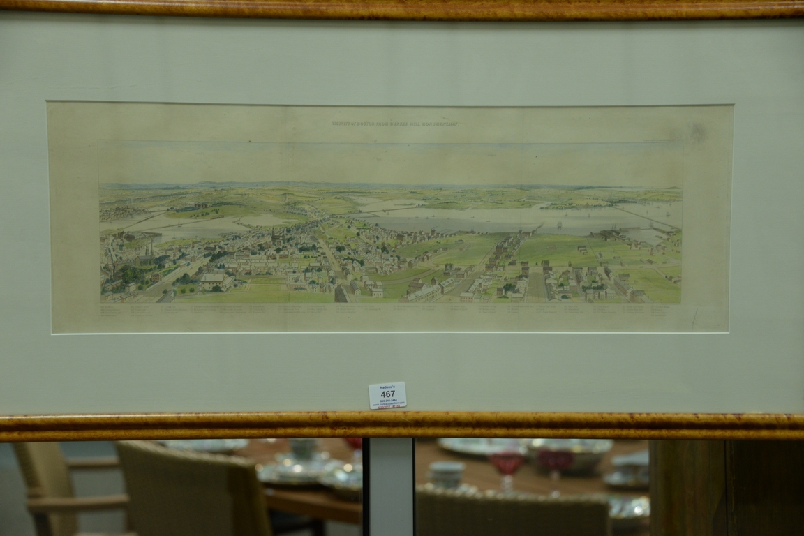 Lot 467: Set of three birdseye view Boston maps including Vicinity of Boston, from Bunker Hill Monument 1857 by James Smille, handcolored eng…