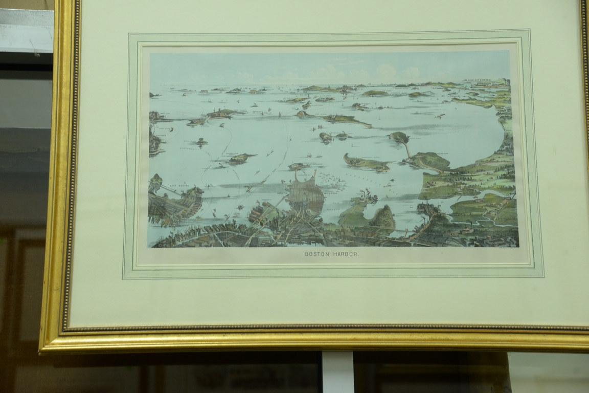 Set of three birdseye view Boston maps including Vicinity of Boston, from Bunker Hill Monument 1857 by James Smille, handcolored engraving Engraved for Drakes History of Boston 1852 drawn by Mallory and Boston Harbor, Massachusetts by Walker Lithographic and Publishing Co. 10 x 25 and 13 1/2 x 22 1/2 Provenance: Property from Credit Suisse’s Americana Collection
