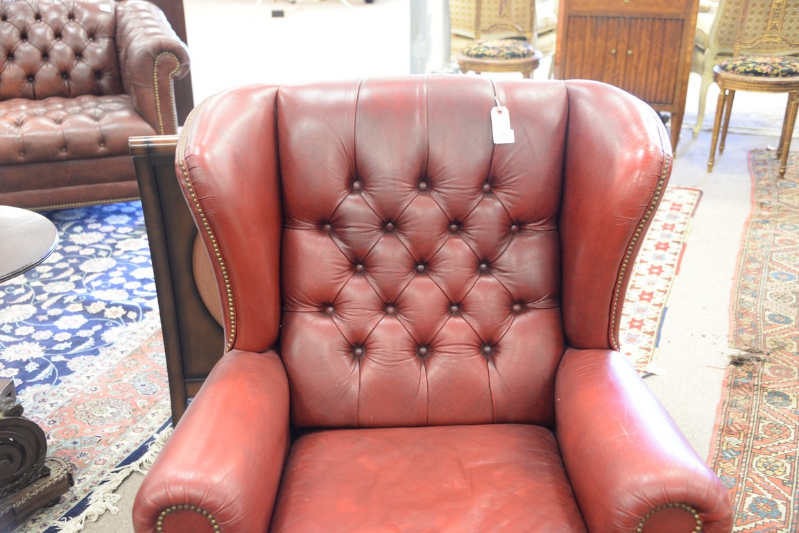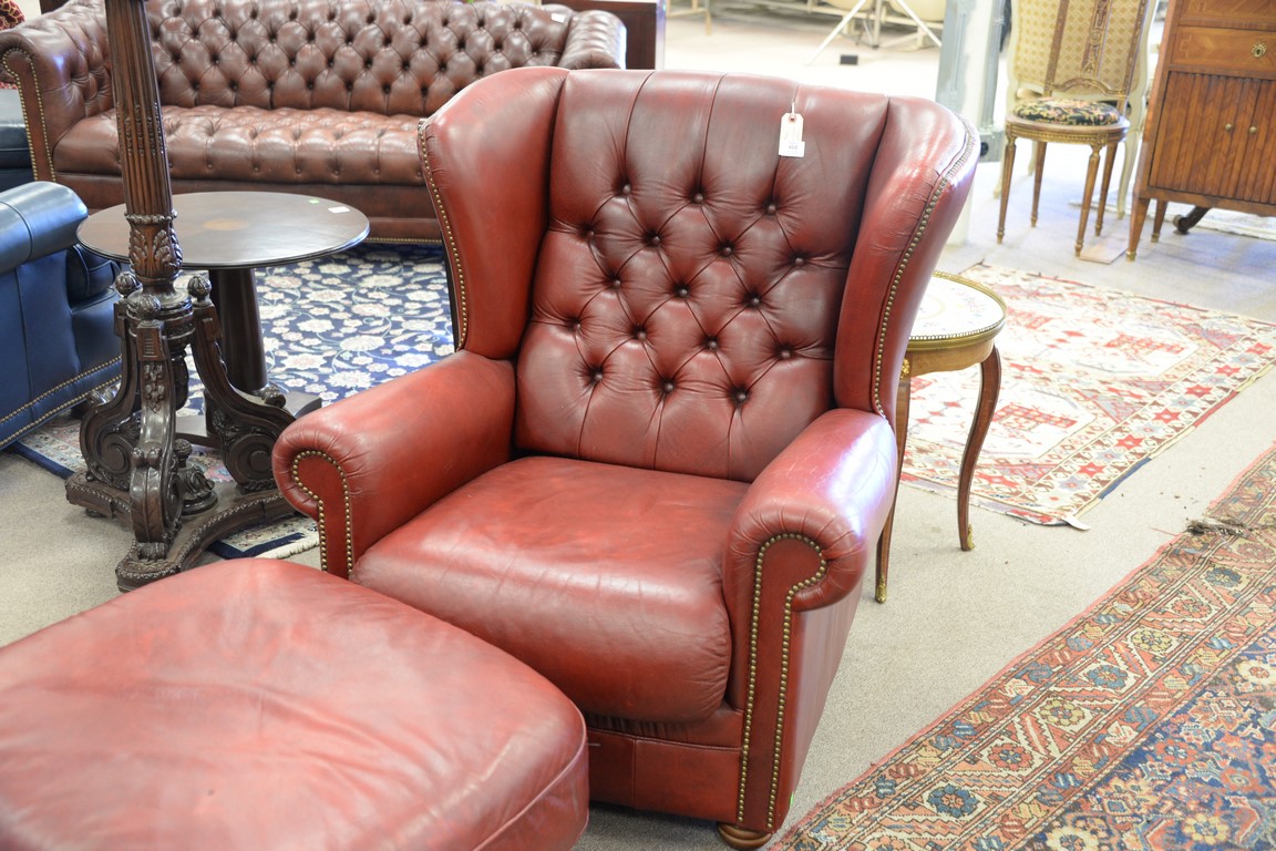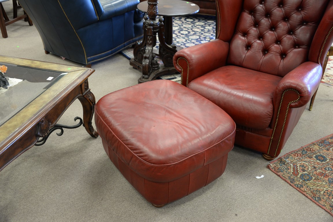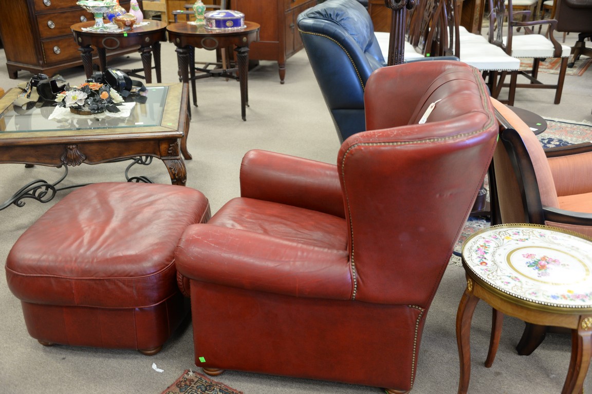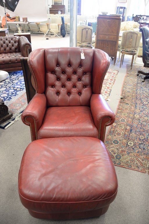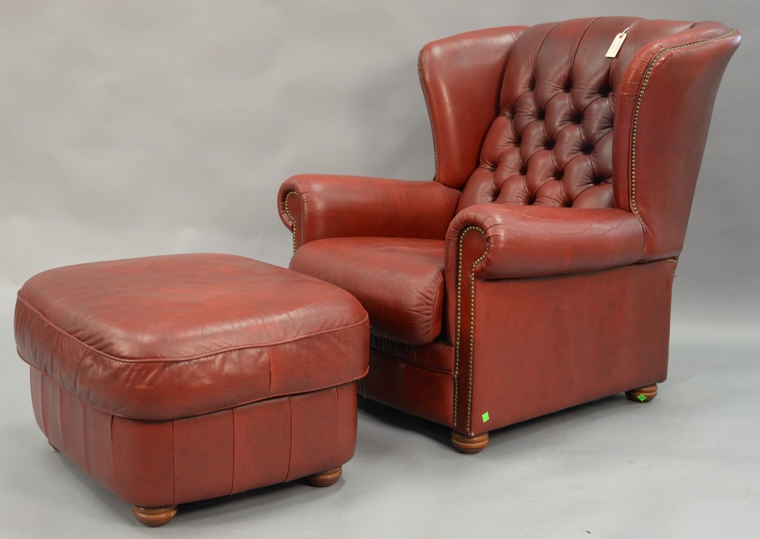 Natuzzi red leather chair and ottoman.
