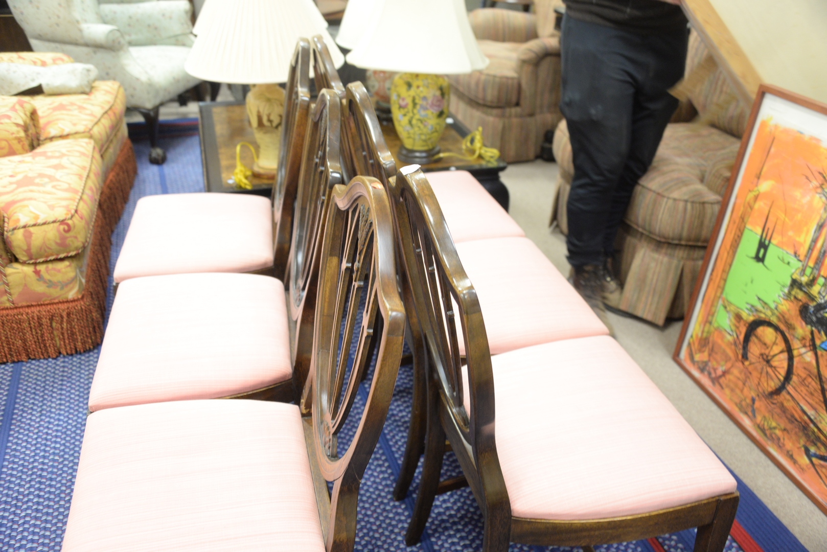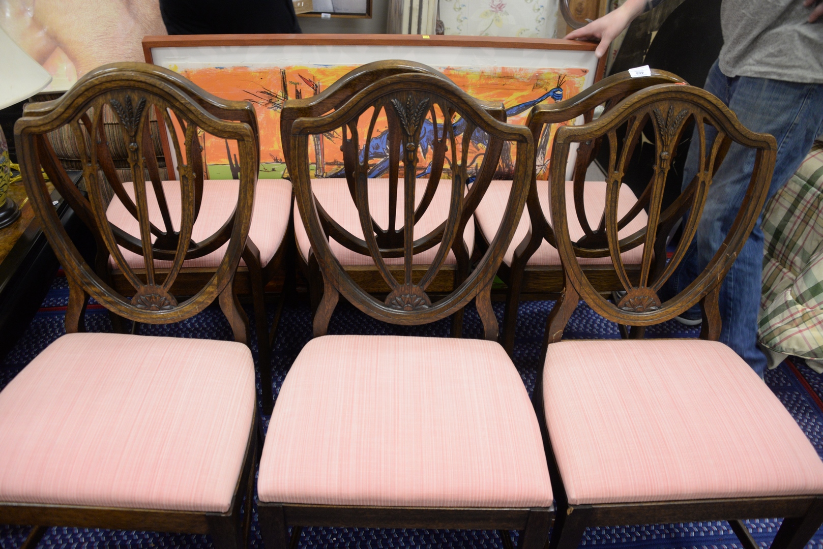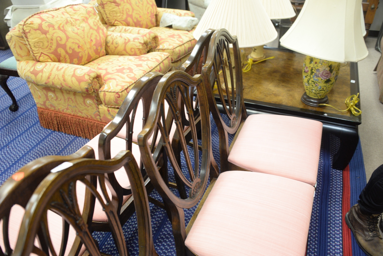 Set of Six Shield Back Dining Chairs, (one repaired).