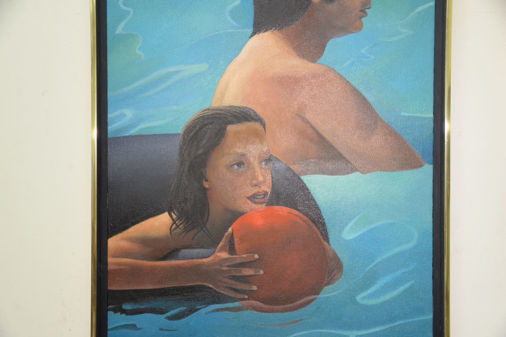 Alan Falk (American, b. 1945), Artist and Model, oil on canvas, signed lower right “A. Falk”, signed, titled, and dated on the reverse “Artist and Model Alan Falk 1981/82″, 34″ x 23”.