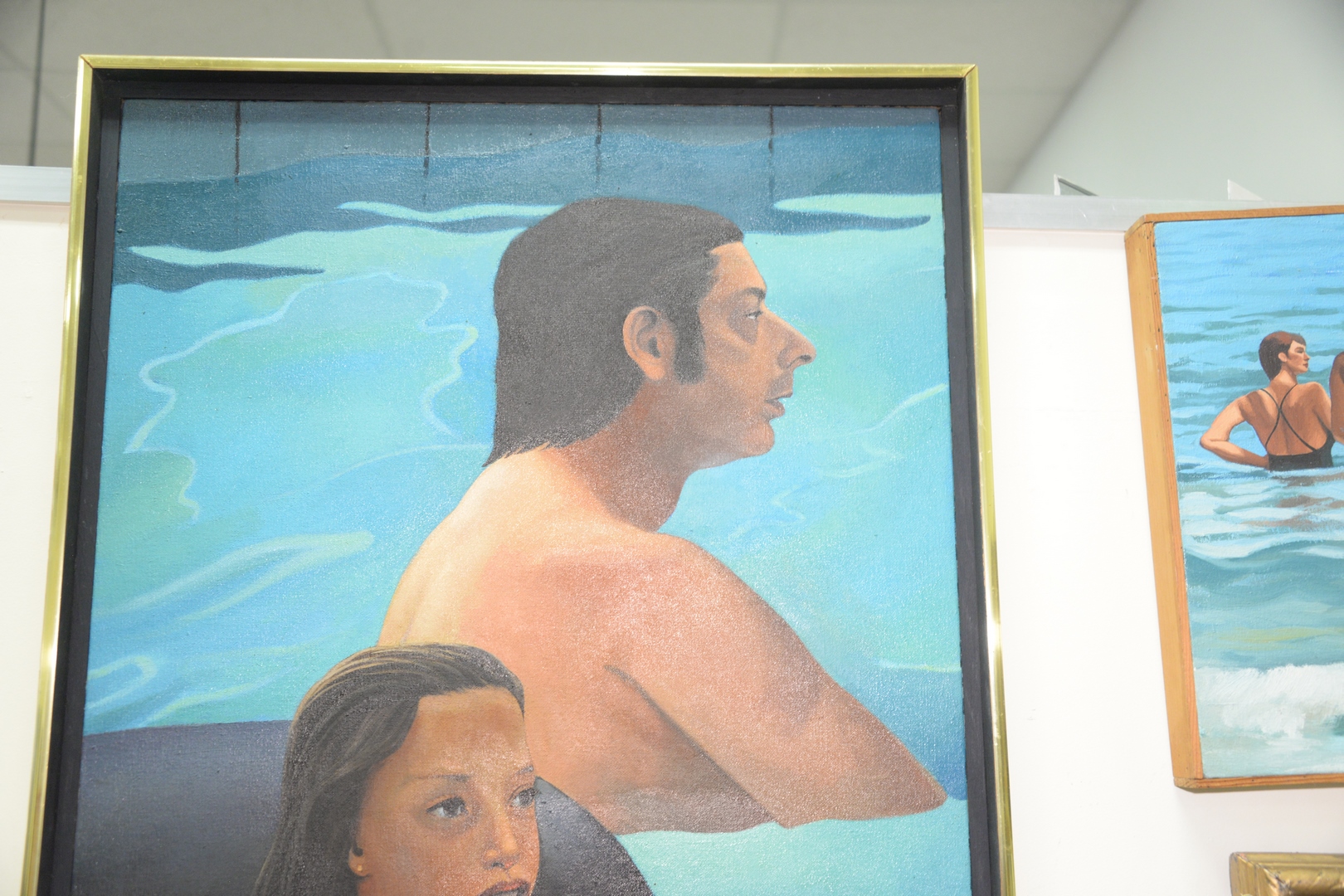 Lot 469: Alan Falk (American, b. 1945), Artist and Model, oil on canvas, signed lower right “A. Falk”, signed, titled, and dated on the reverse “Artist and Model Alan Falk 1981/82″, 34″ x 23”.