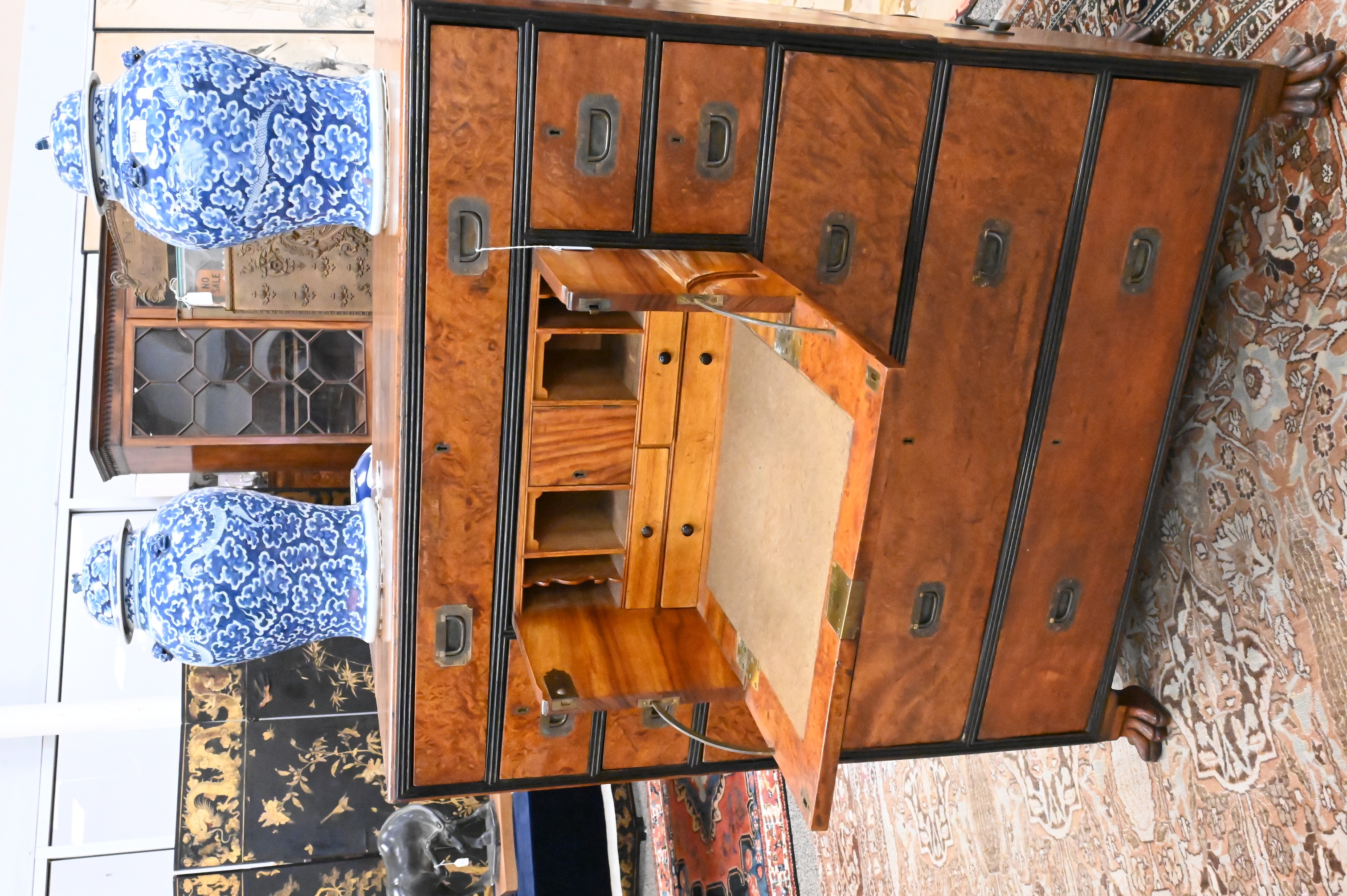 Lot 469: Burl Walnut Campaign Chest with Secretary Drawer
