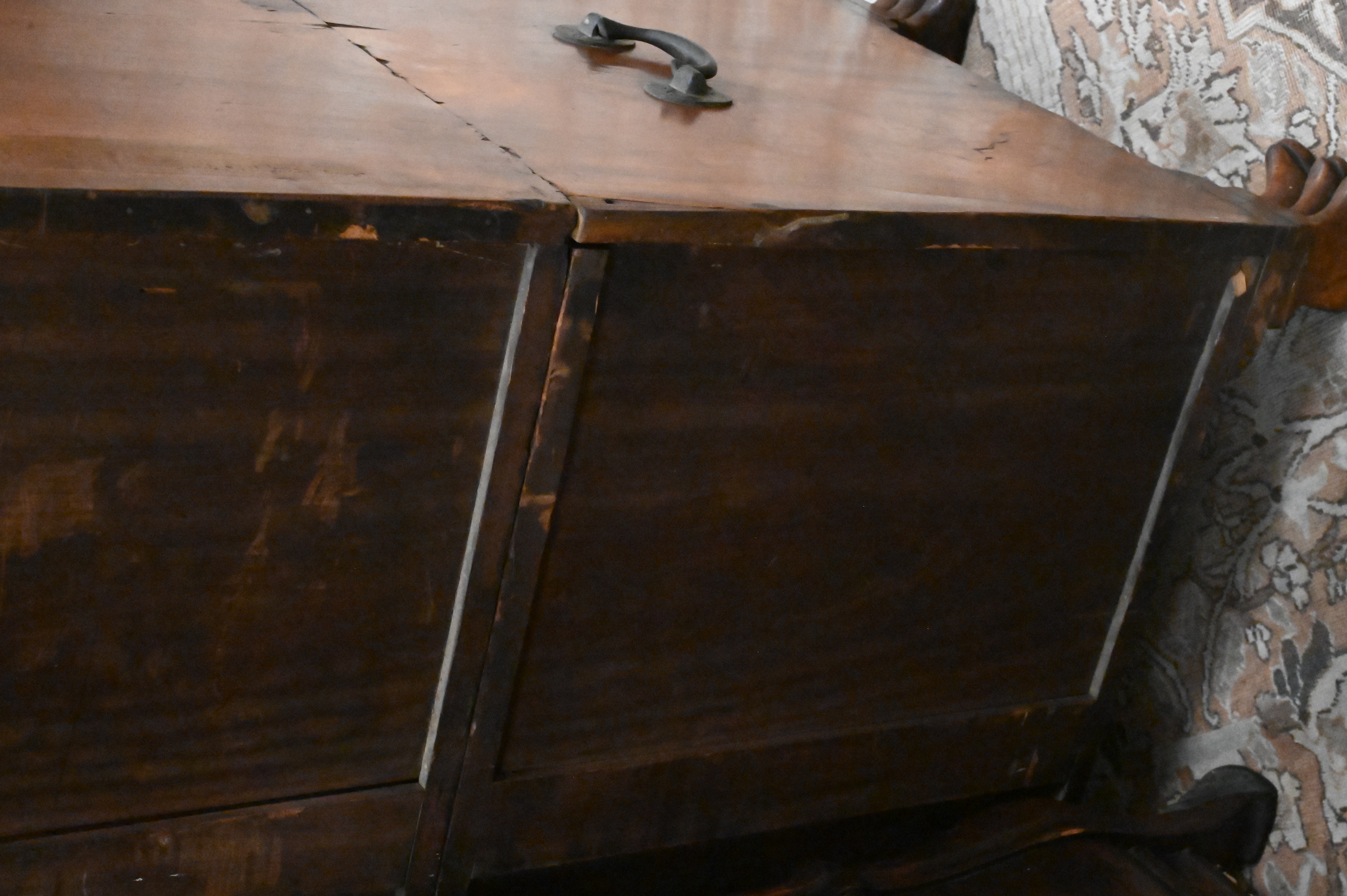 Condition: Very good overall; age-expected wear, minor veneer imperfections, oxidation to brass; structurally sound.