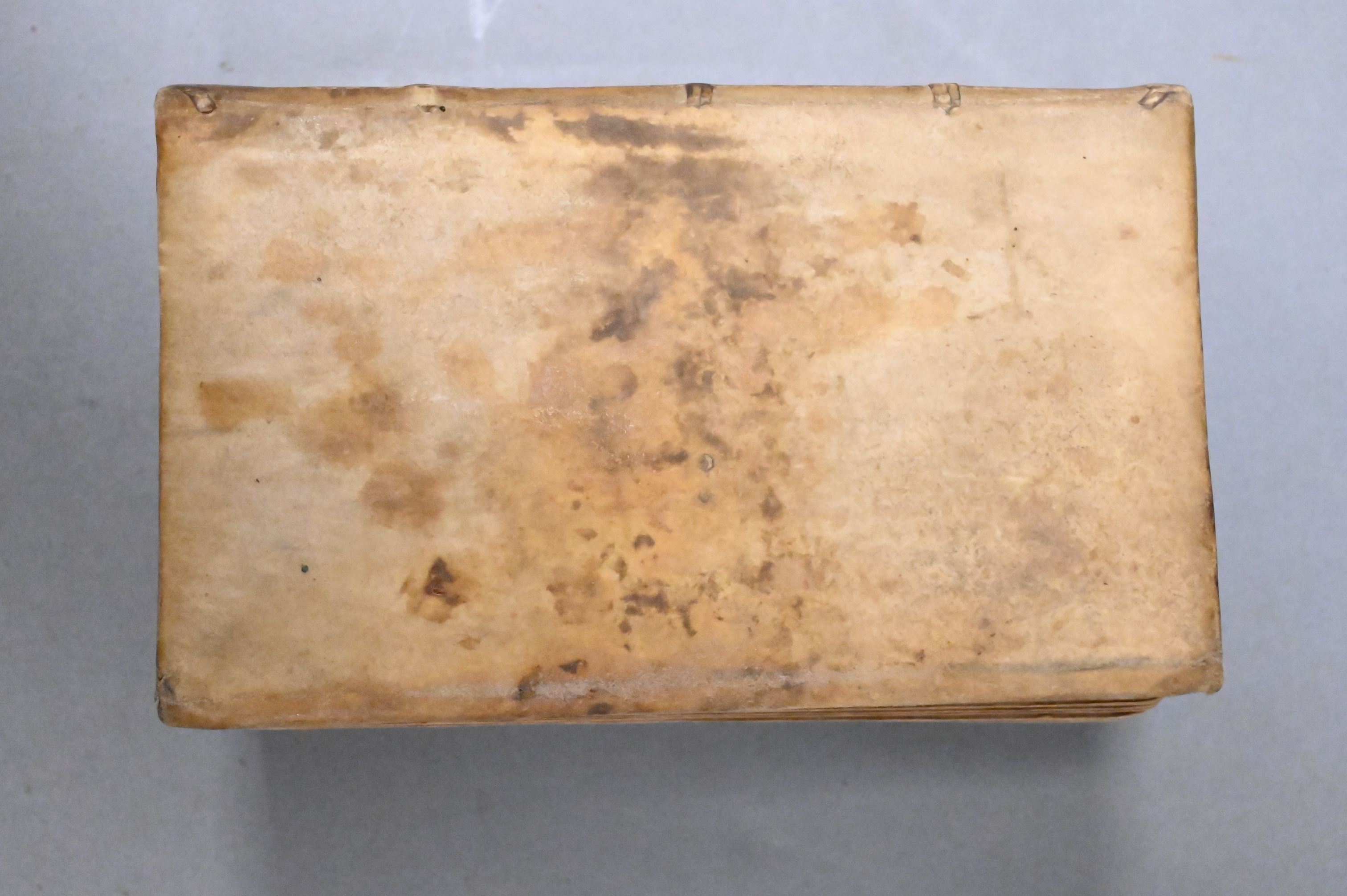 Condition: presents well, wear consistent with age, discoloration and foxing to leather, tear to front page