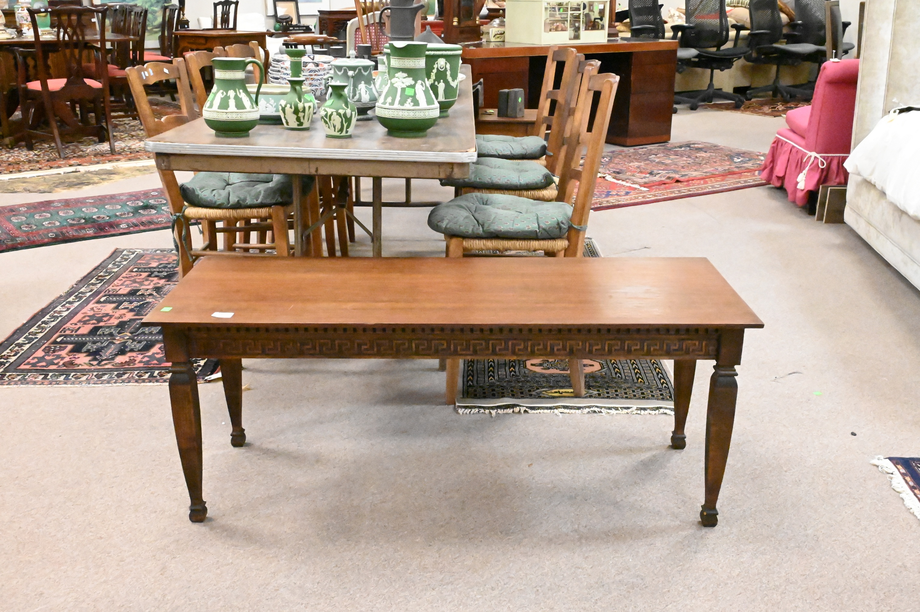 Lot 469: Pair of Greek Key Decorated Low Tables