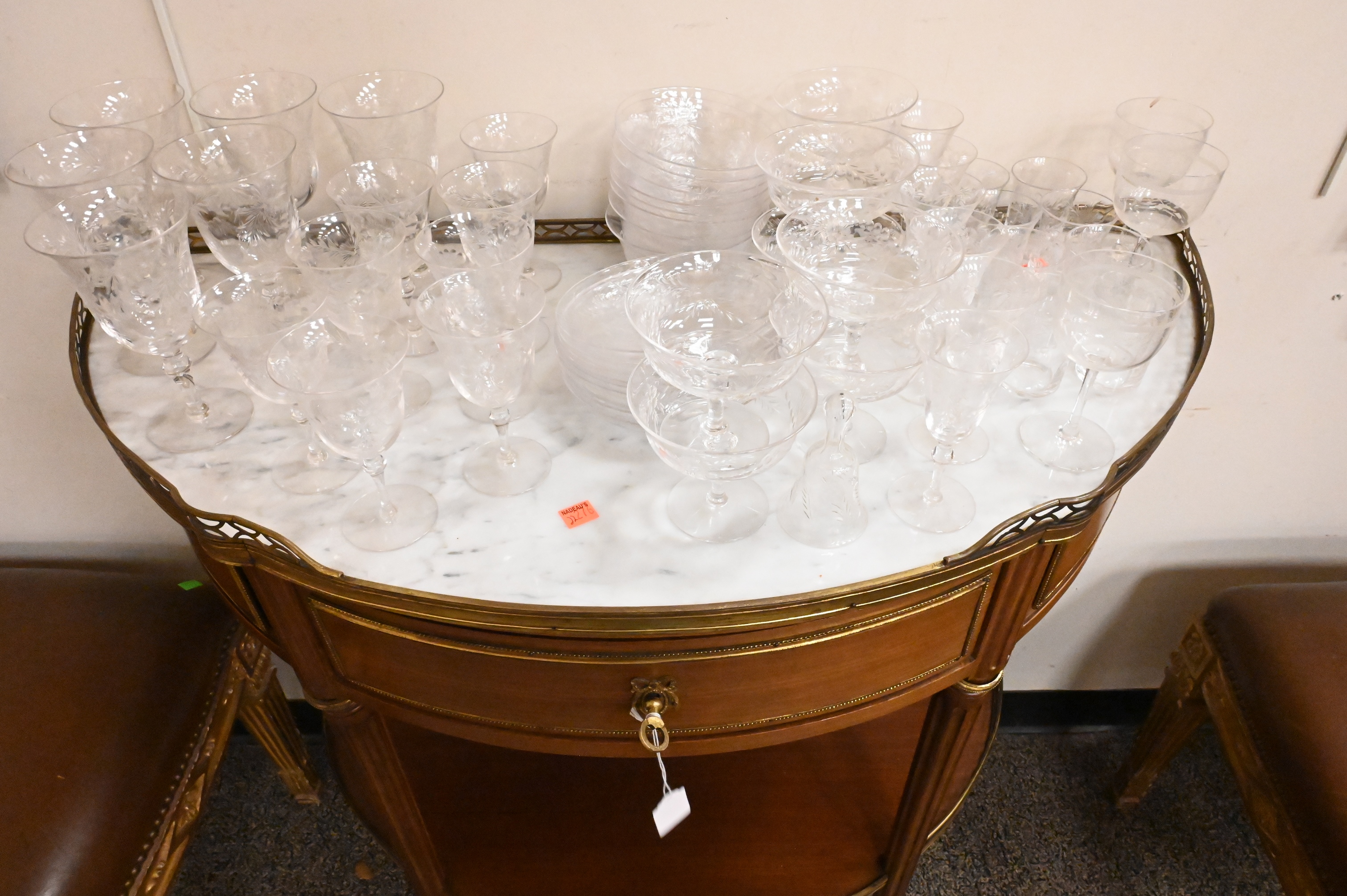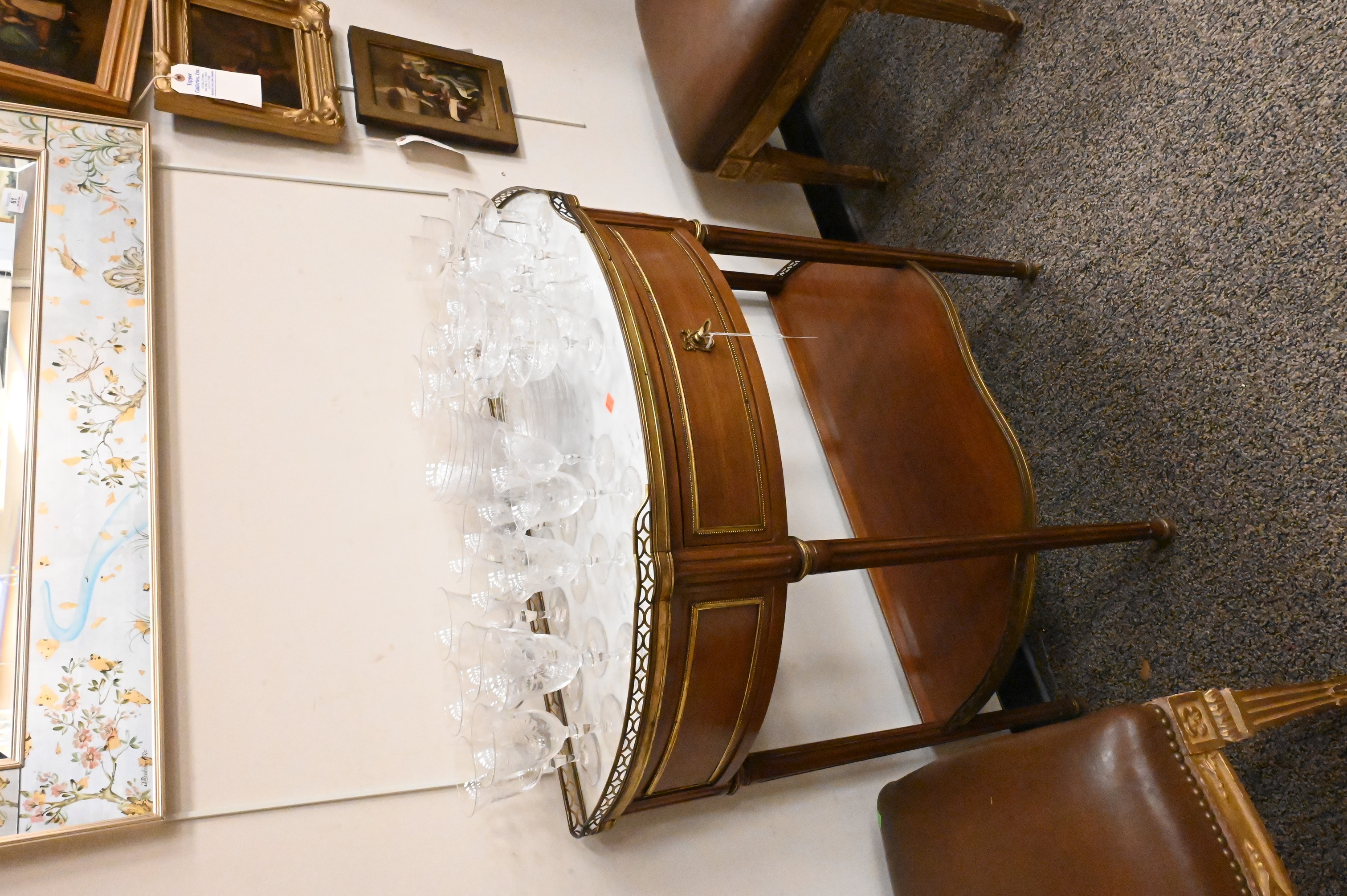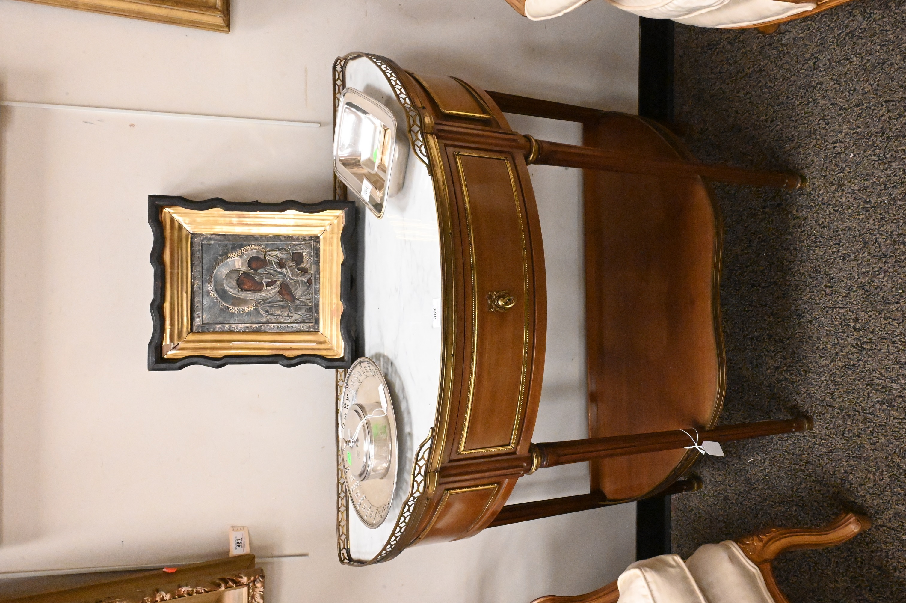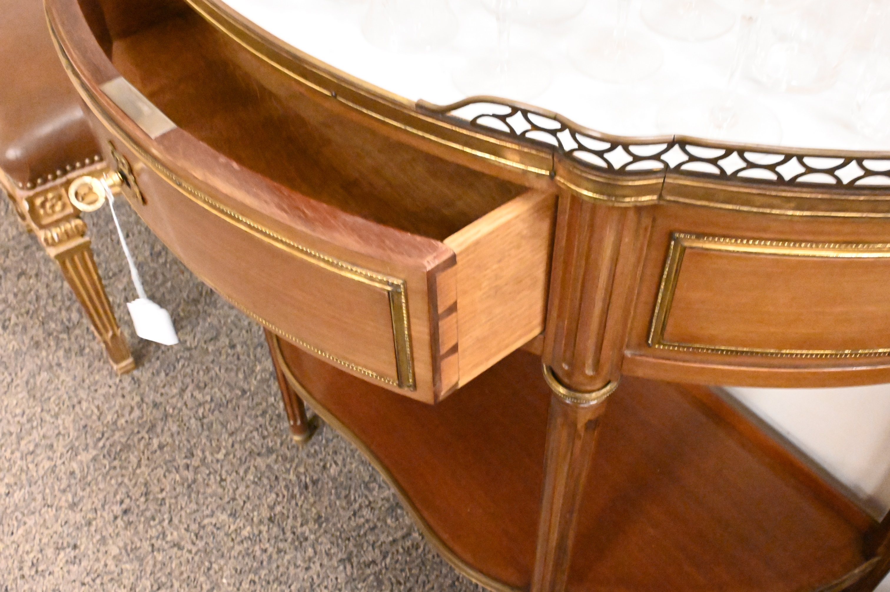 Lot 469: Pair of Mahogany Louis XVI Style Marble Top Demilune Consoles