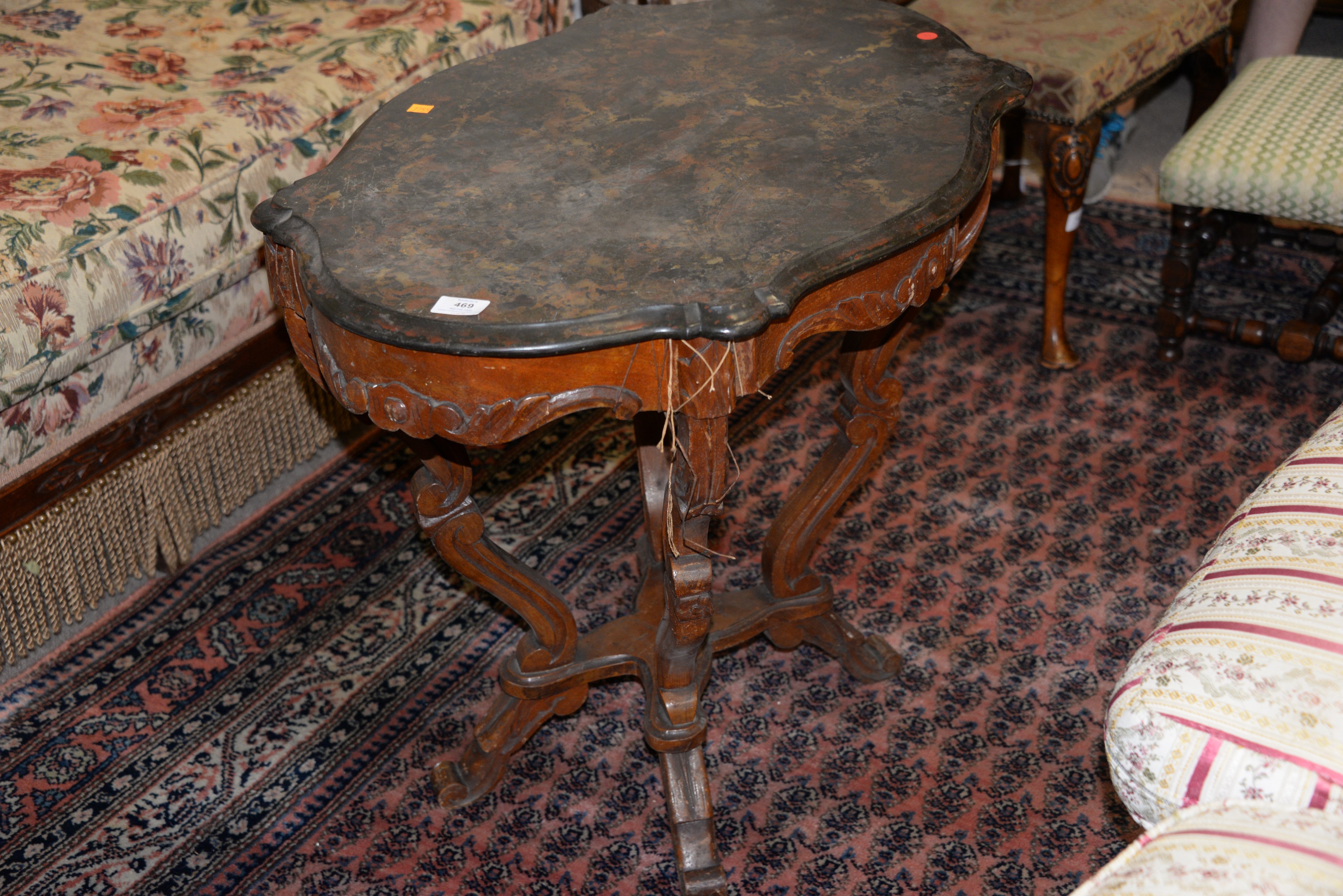 Victorian marble top center table. ht. 26 in. wd. 31 in. dp. 22 in.