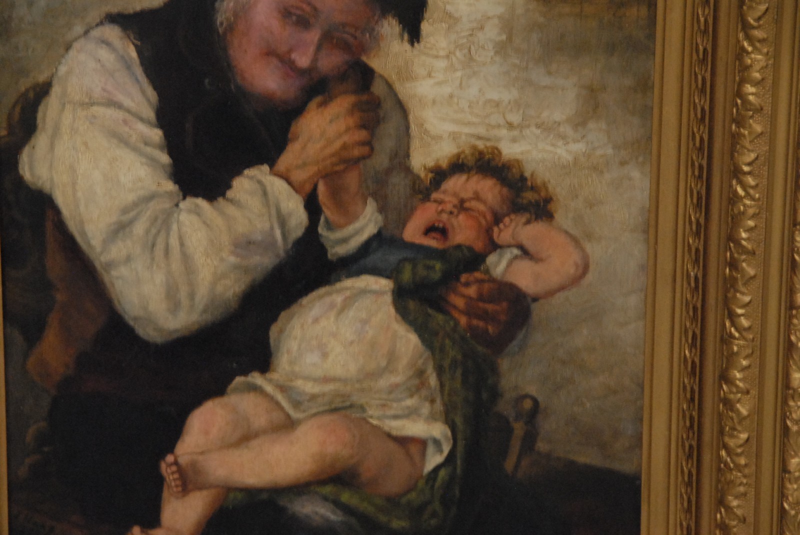 J. Haas, MAN WITH CRYING CHILD, oil on canvas, signed lower left J. Haas, 1885
