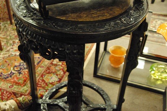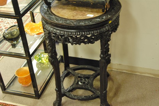 Chinese round stand with inset marble top. ht. 32 in. dia. 21 in.
