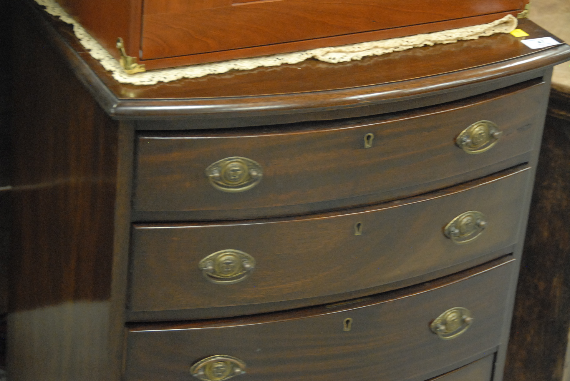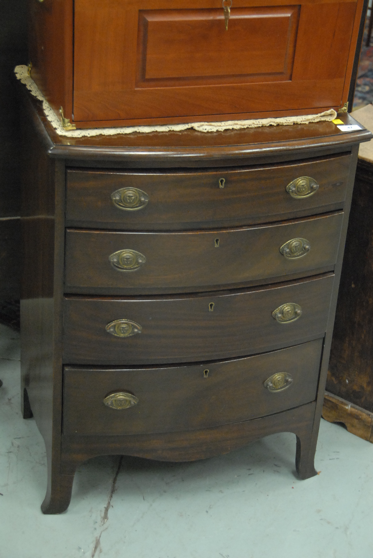 Custom diminutive chest with four drawers and bow front, ht. 30in. wd. 23in.