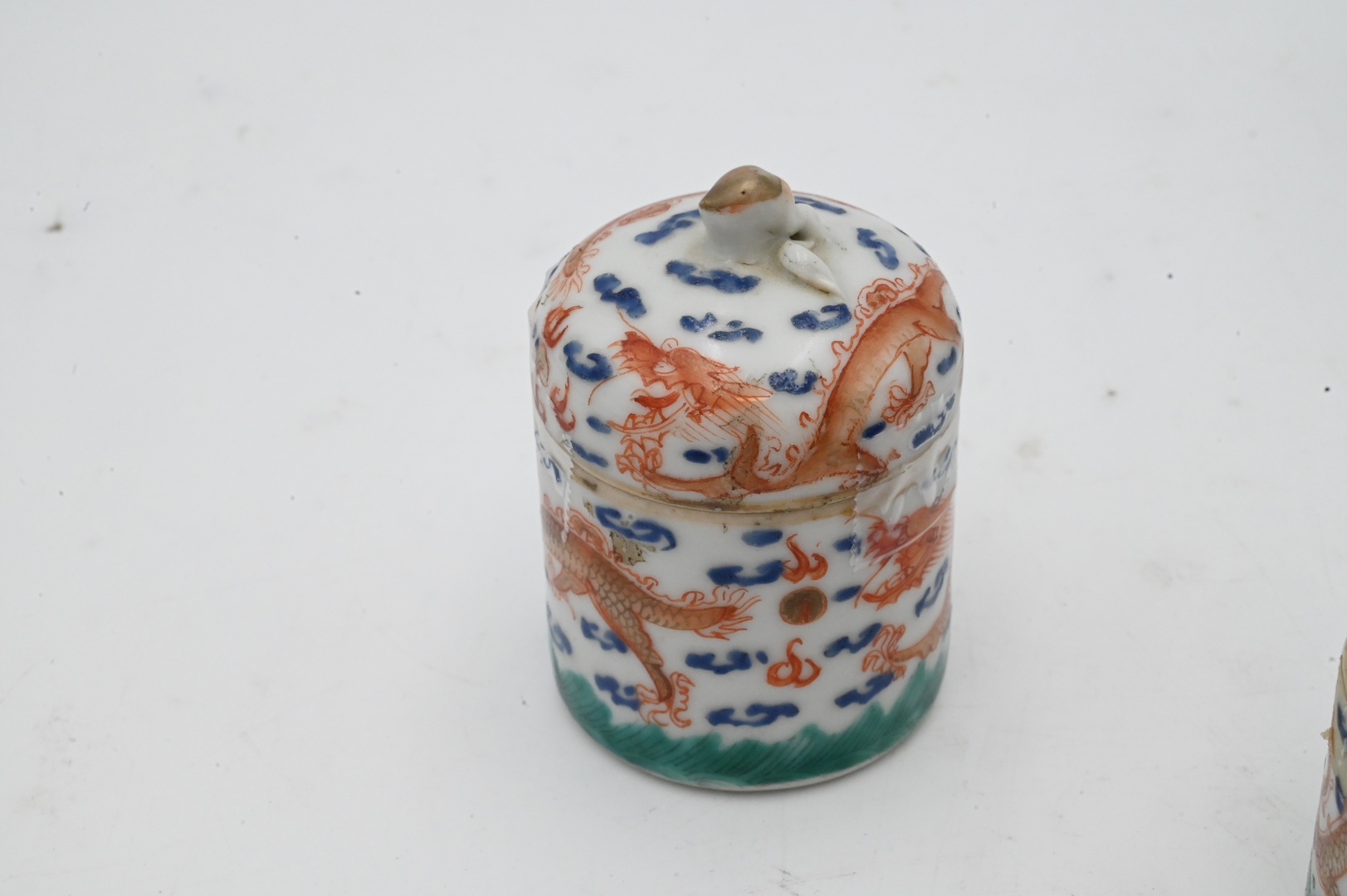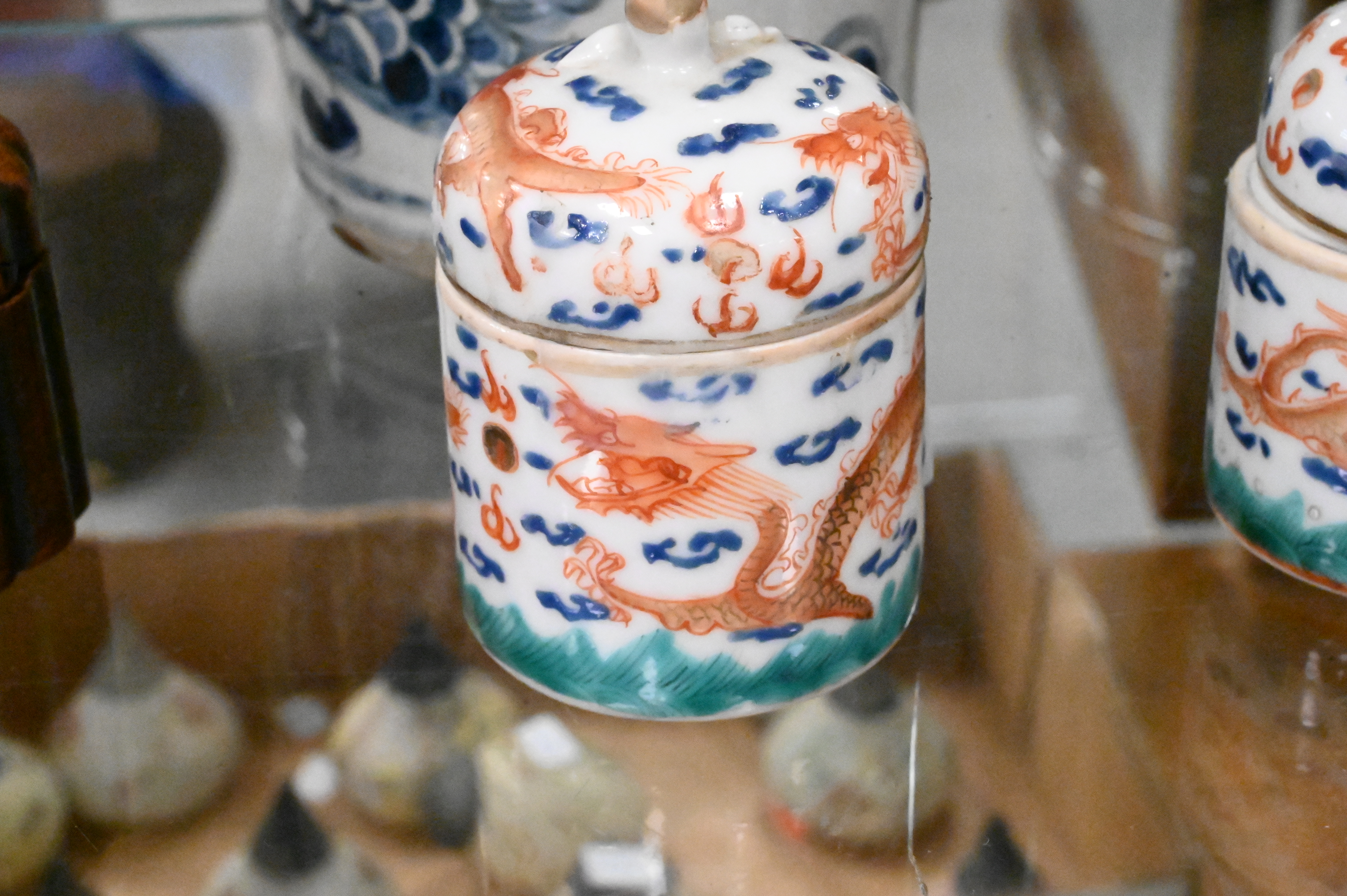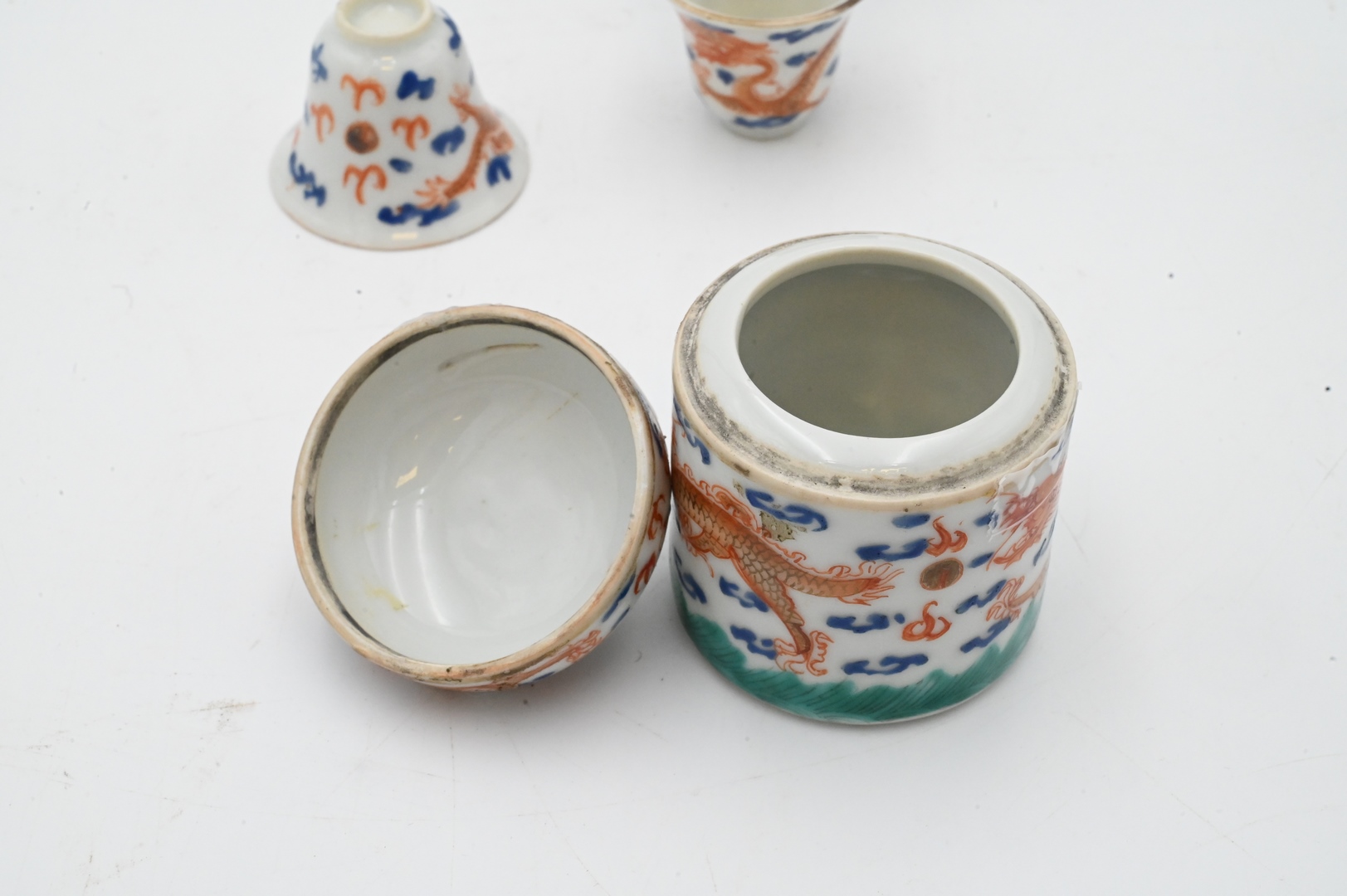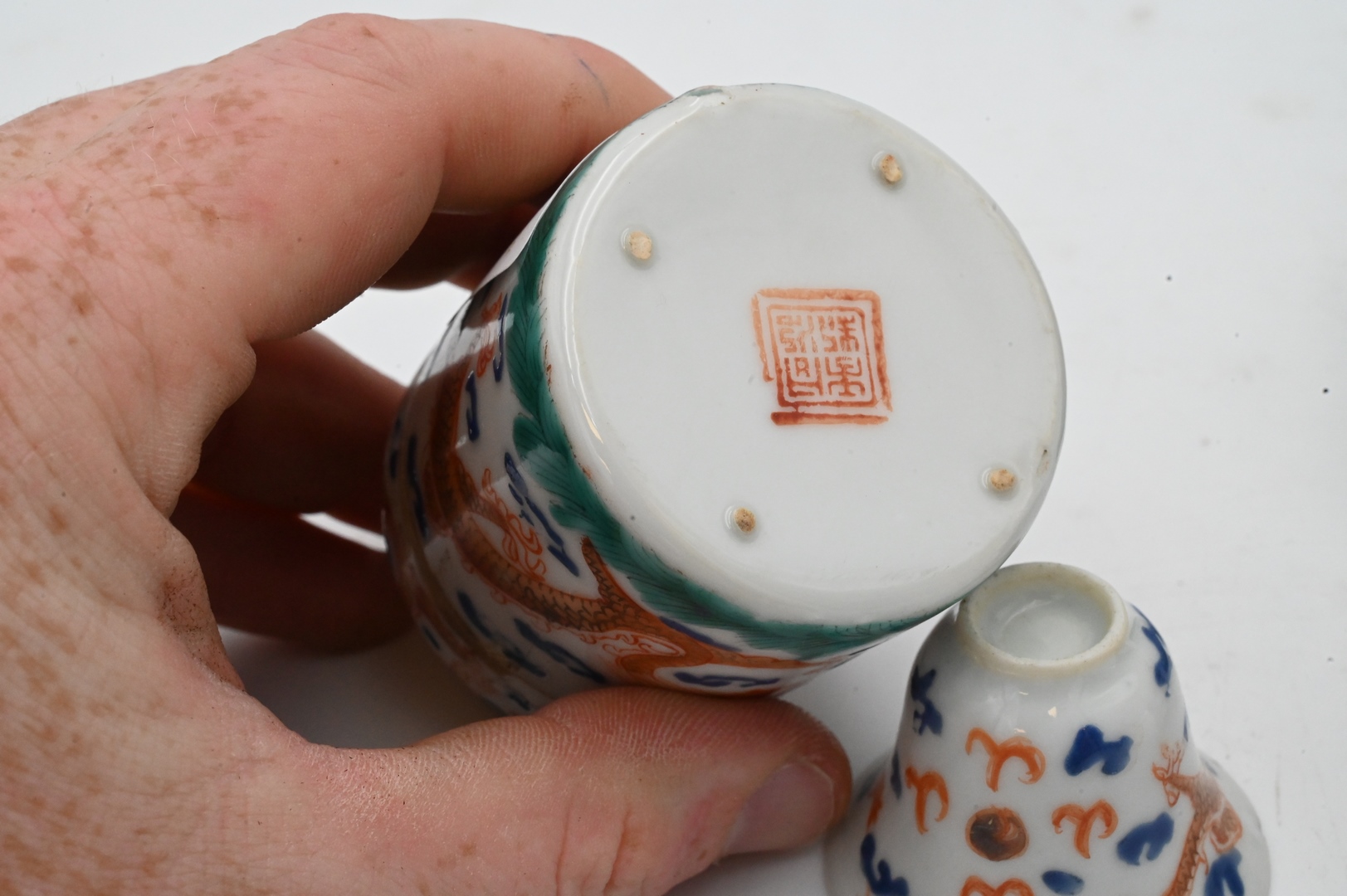 Famille Rose Porcelain Dragon Cup and Warmer Set, height 3 inches.