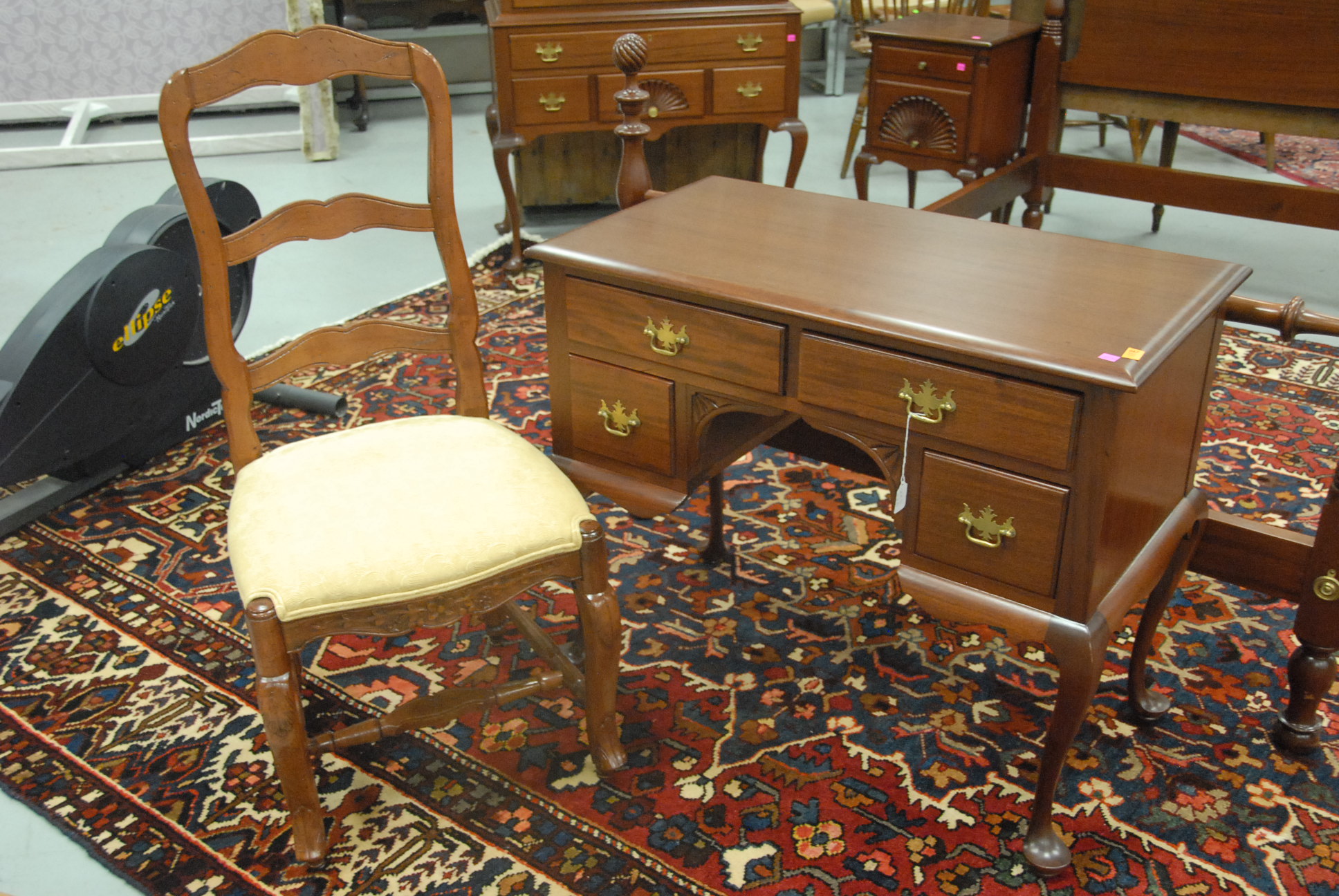 Lot 47: Mayflower Furniture Co. mahogany vanity and mirror along with French style chair. vanity: ht. 30in. dp. 20in.