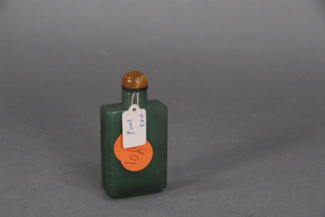 Lot 47: Spinach green jade snuff bottle with agate
