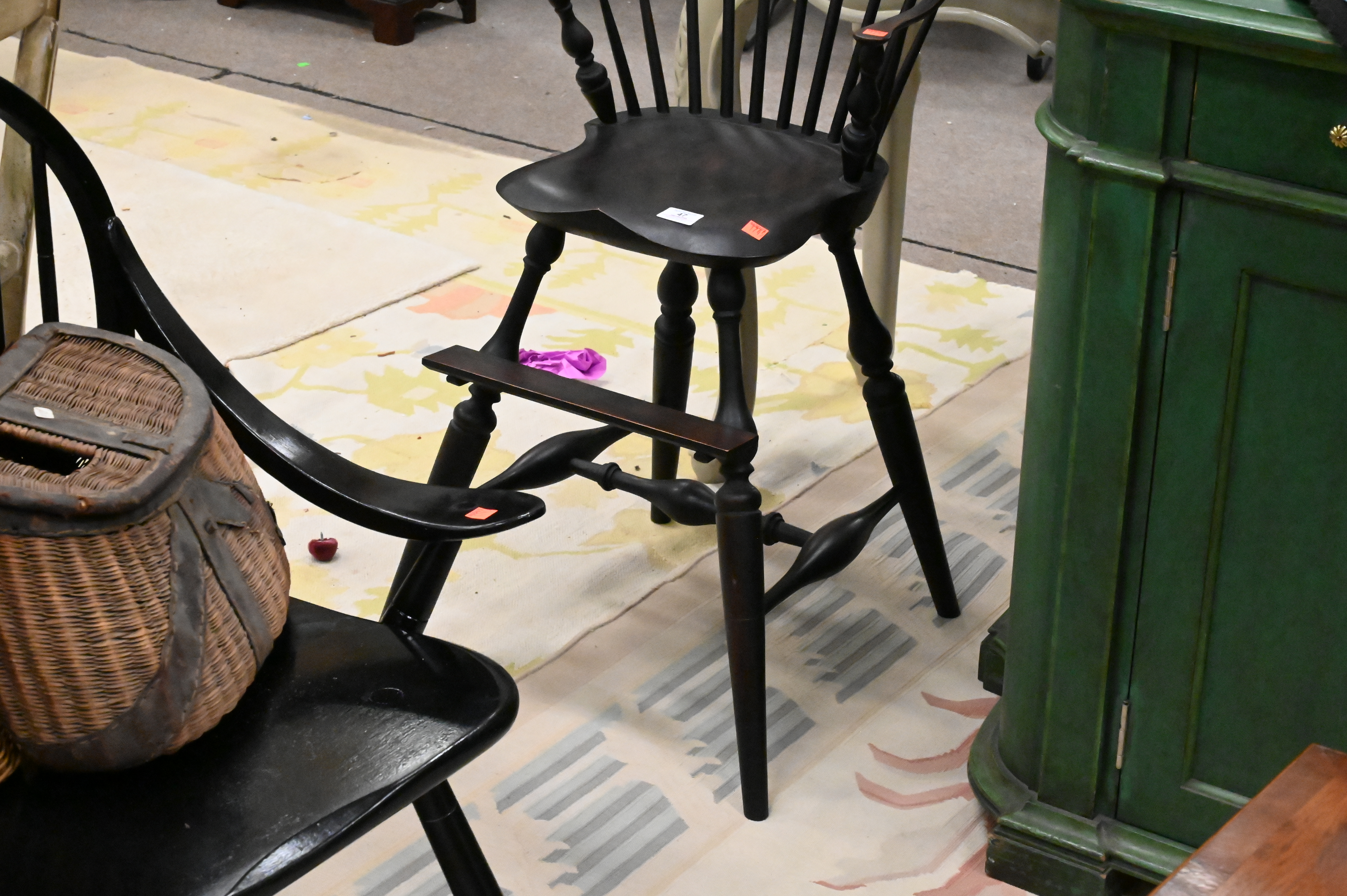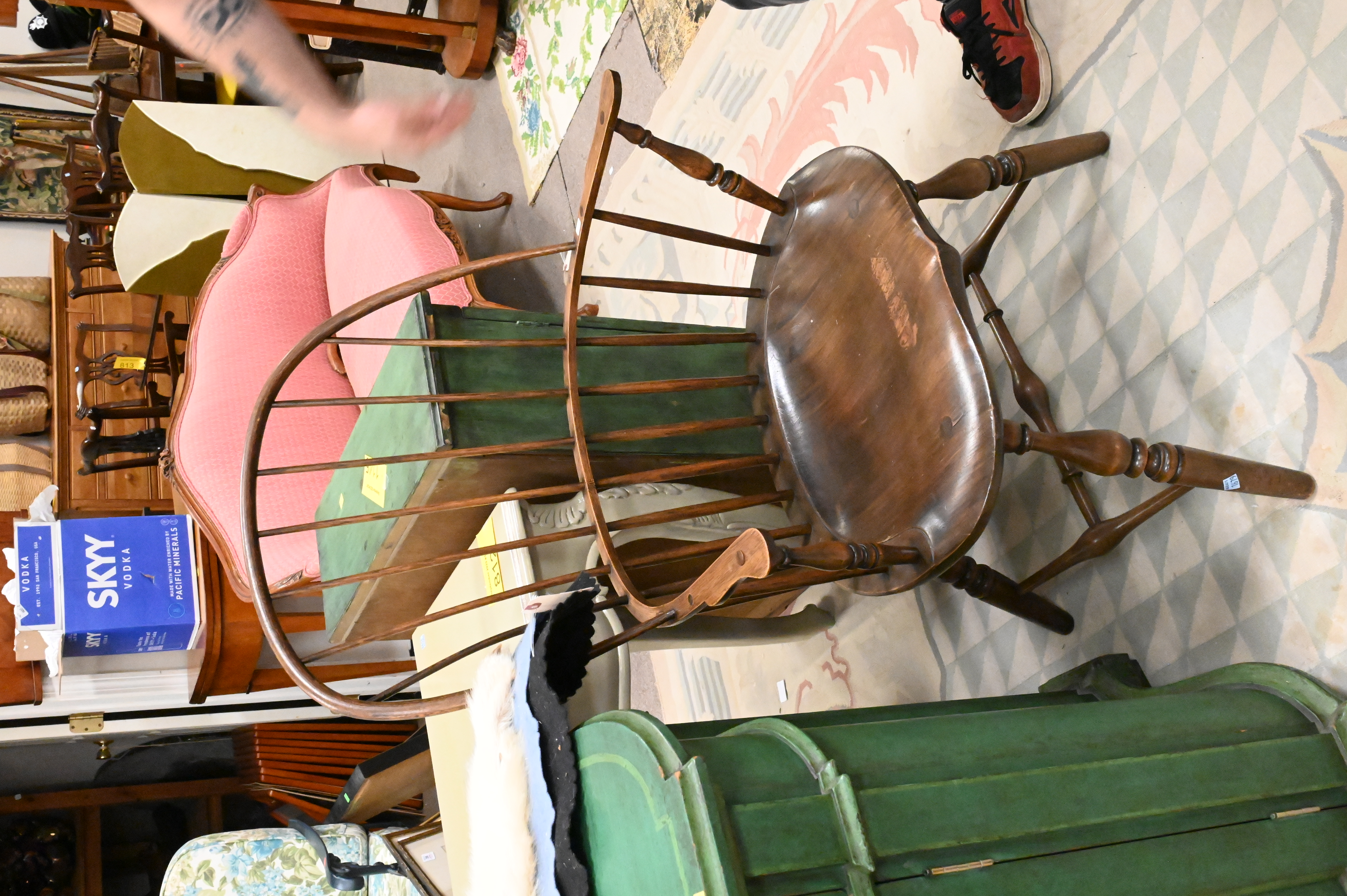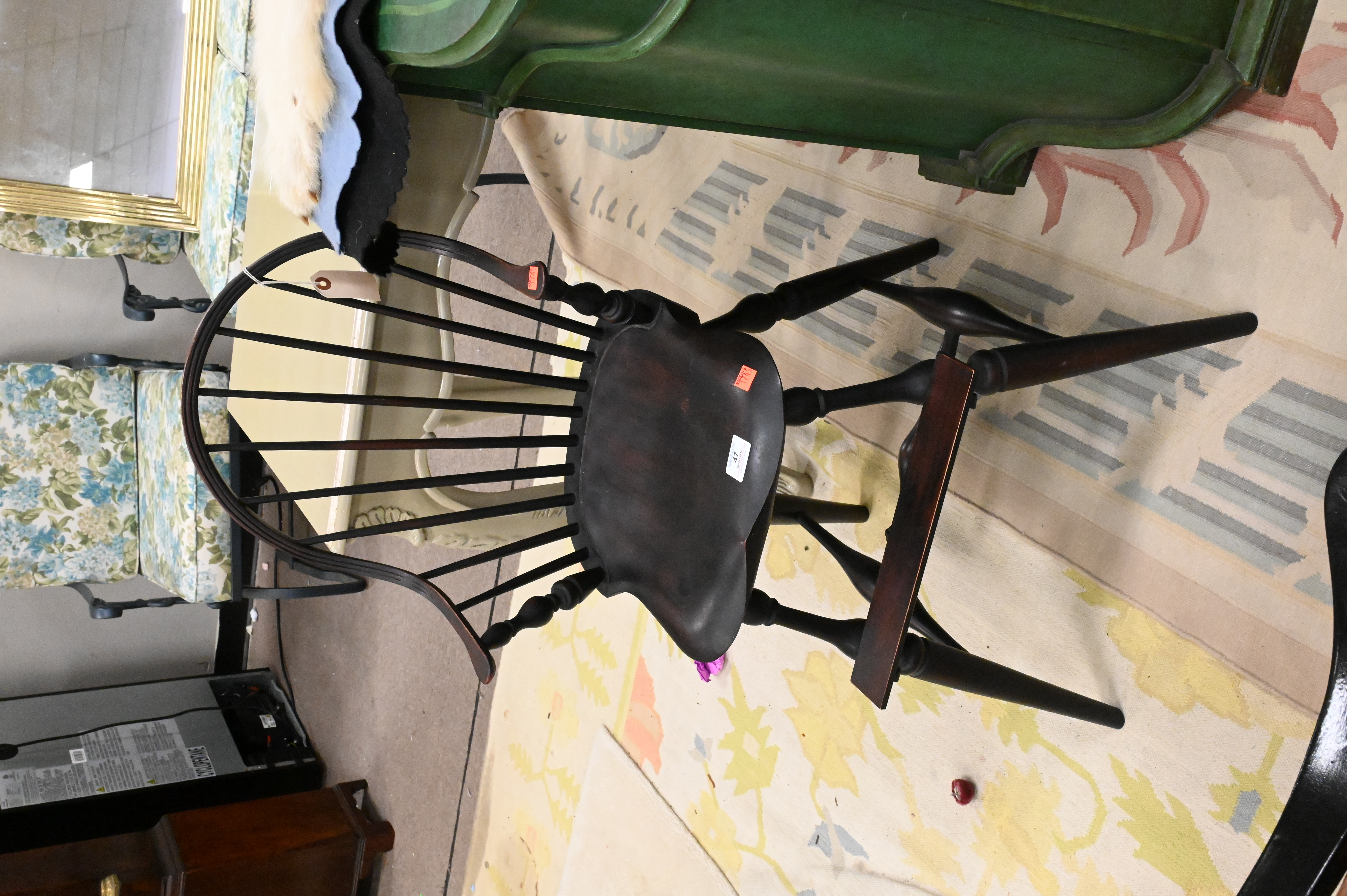 Three Piece Windsor Seating Lot, to include a windsor bench, arm chair, along with Warren Chair work childs chair, bench length 61 inches.
